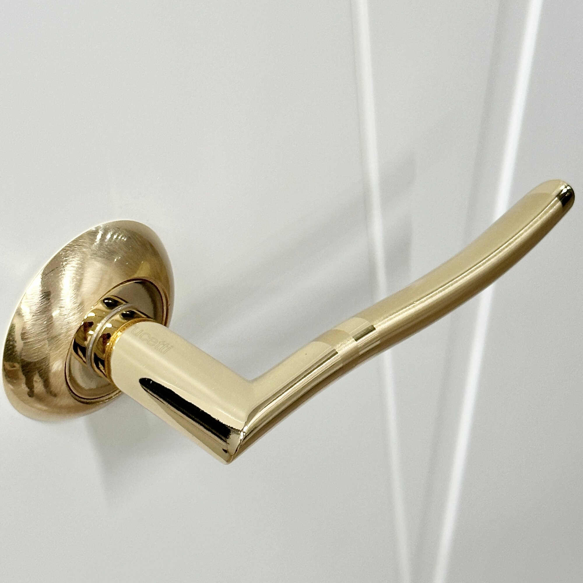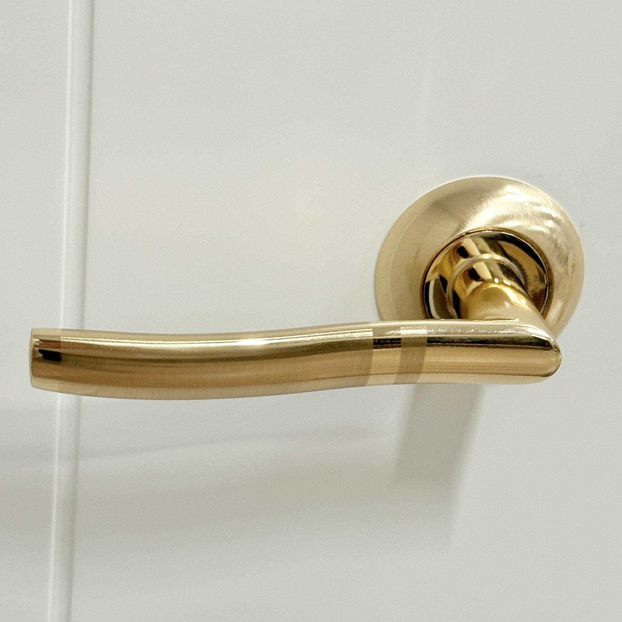 Ручка дверная Rucetti (Ручетти) RAP 3 SG/GP + Магнитная защелка Morelli (Морелли) M1895 PG + Дверные пели без врезки RFH-100*75*2,5 SG - 2 шт. интересное: