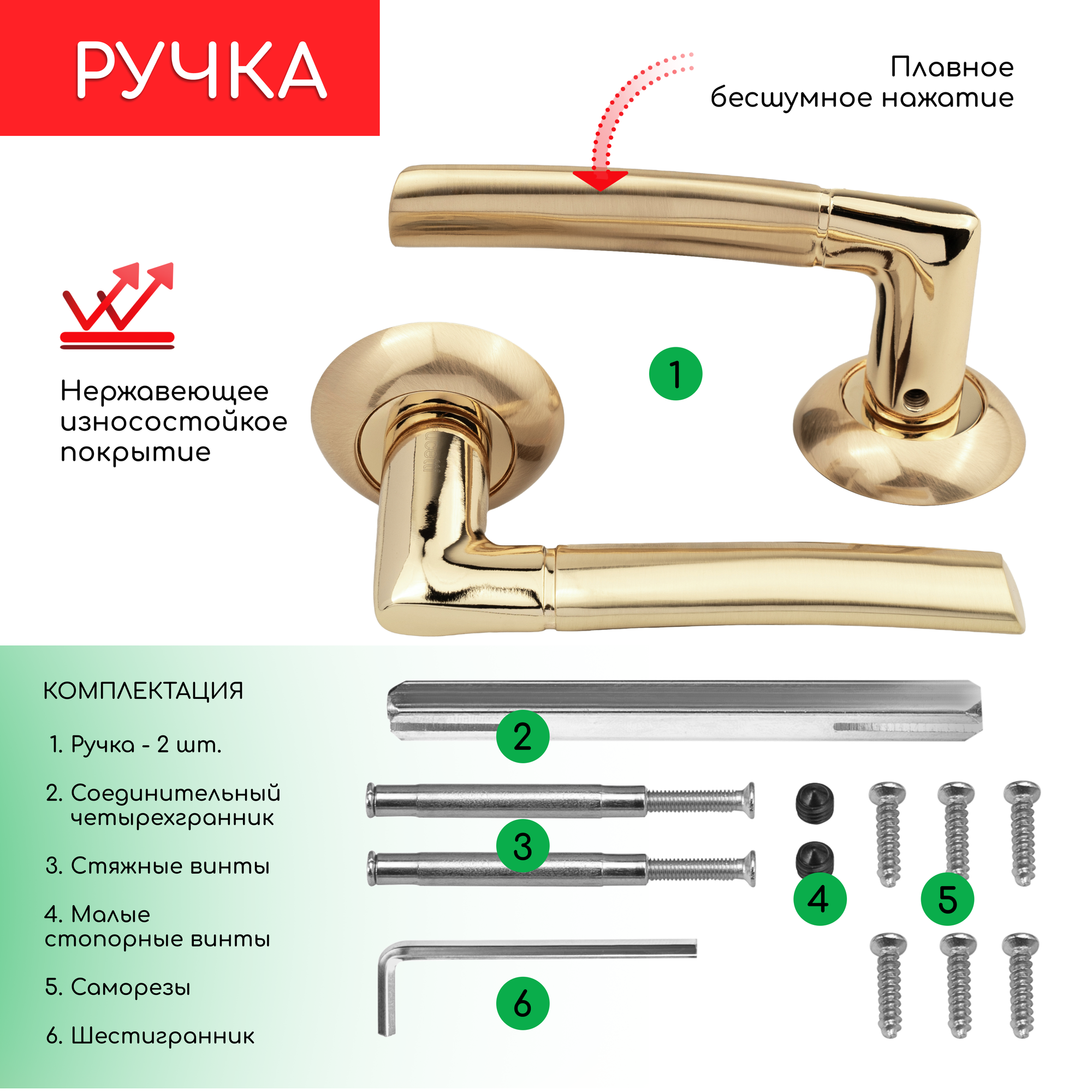 Комплект для межкомнатной двери Rucetti ручки RAP 6 SG/PG + фиксатор + бесшумный замок / матовое золото