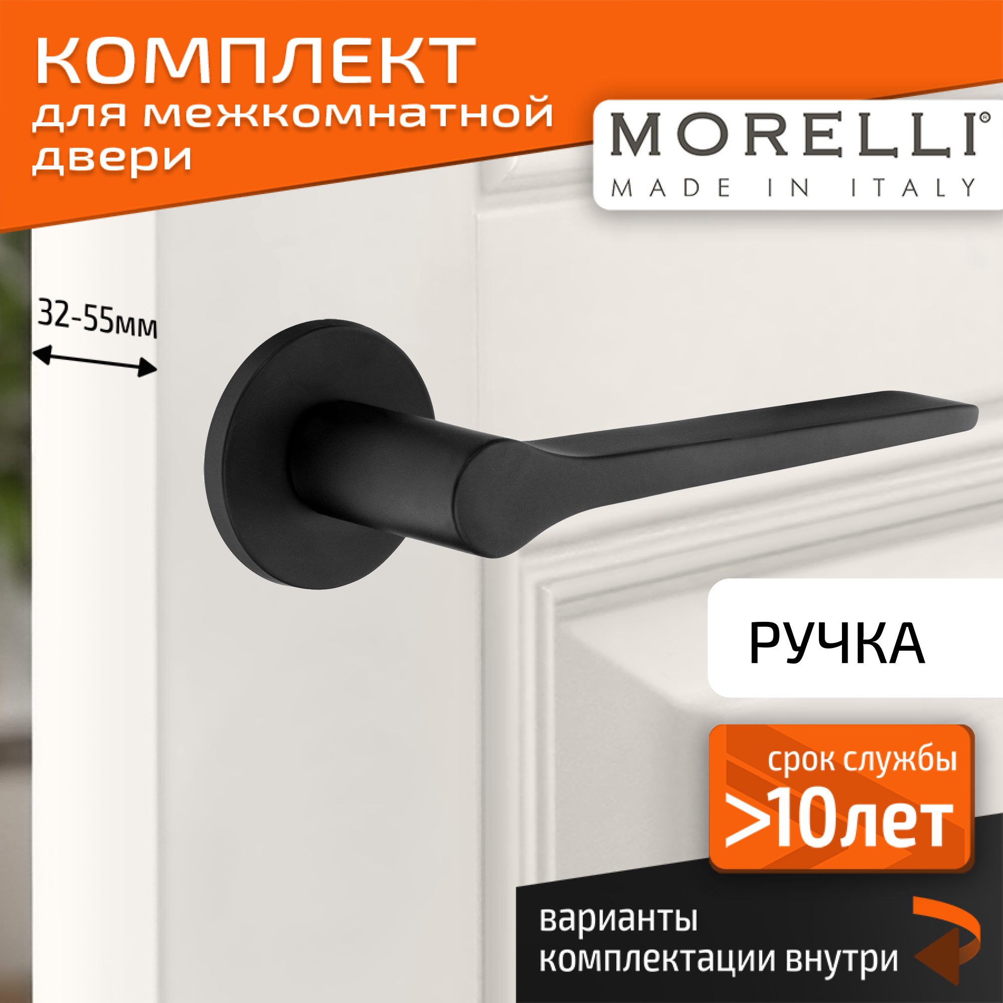 Комплект для межкомнатной двери Morelli / Дверная ручка MH 60 R6 BL + бесшумный замок / черный матовый