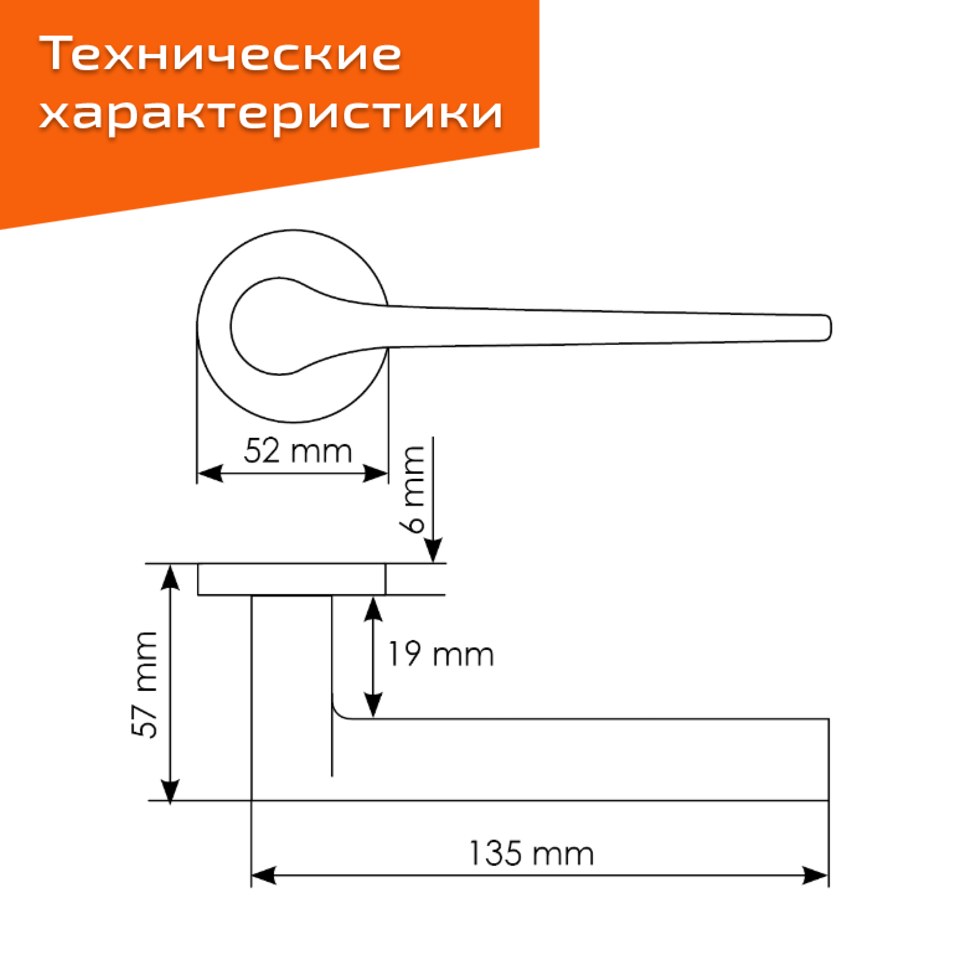 Комплект для межкомнатной двери Morelli / Дверная ручка MH 60 R6 SC + поворотник / Матовый хром