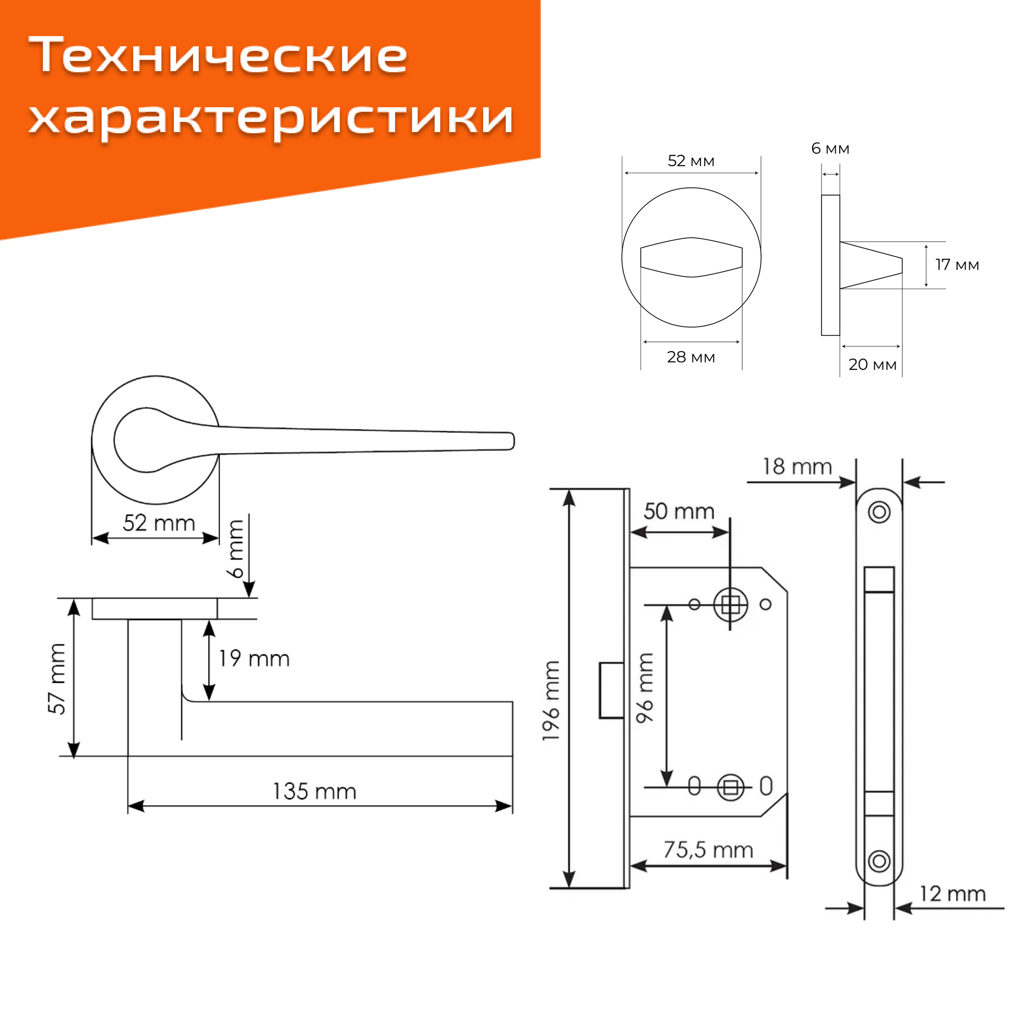 СохранитьКомплект для межкомнатной двери Morelli / Дверная ручка MH 60 R6 SC + поворотник + бесшумный замок / Матовый хром интересное: