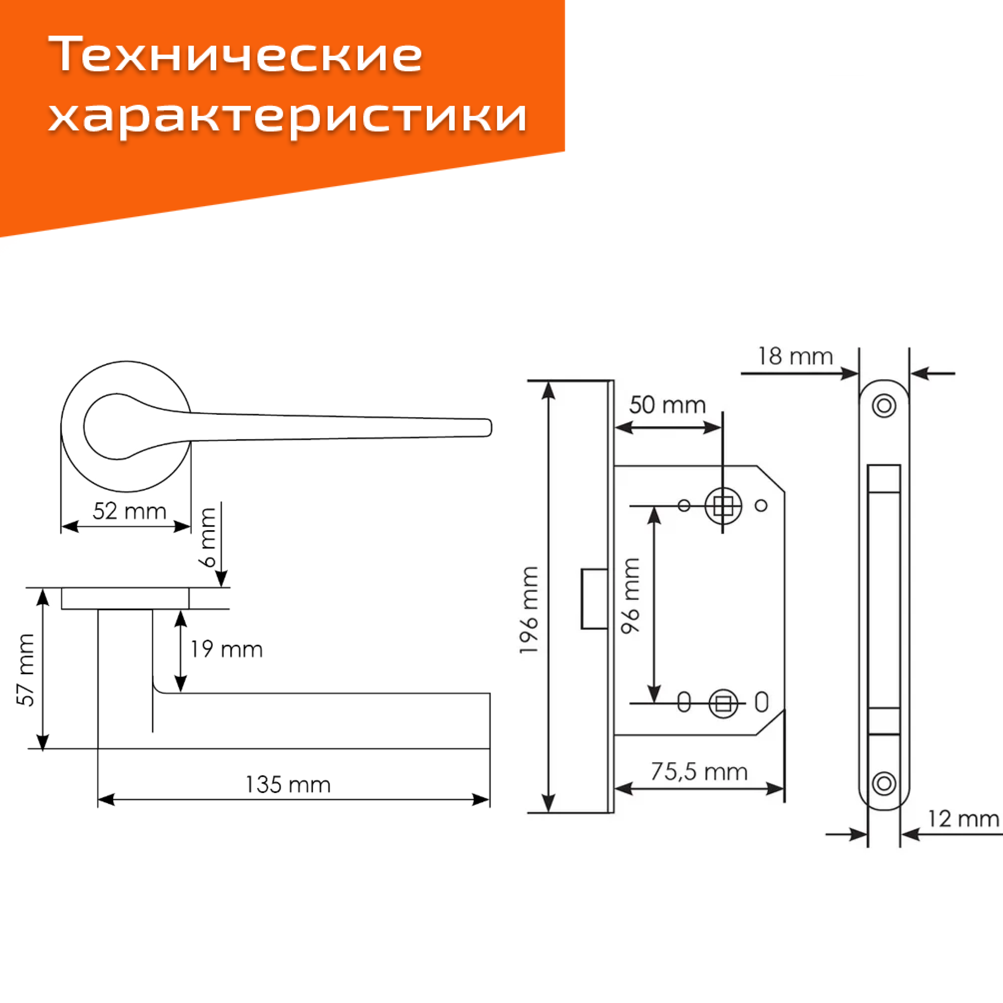 Комплект для межкомнатной двери Morelli / Дверная ручка MH 60 R6 SC + межкомнатная защелка + врезные петли /Матовый хром