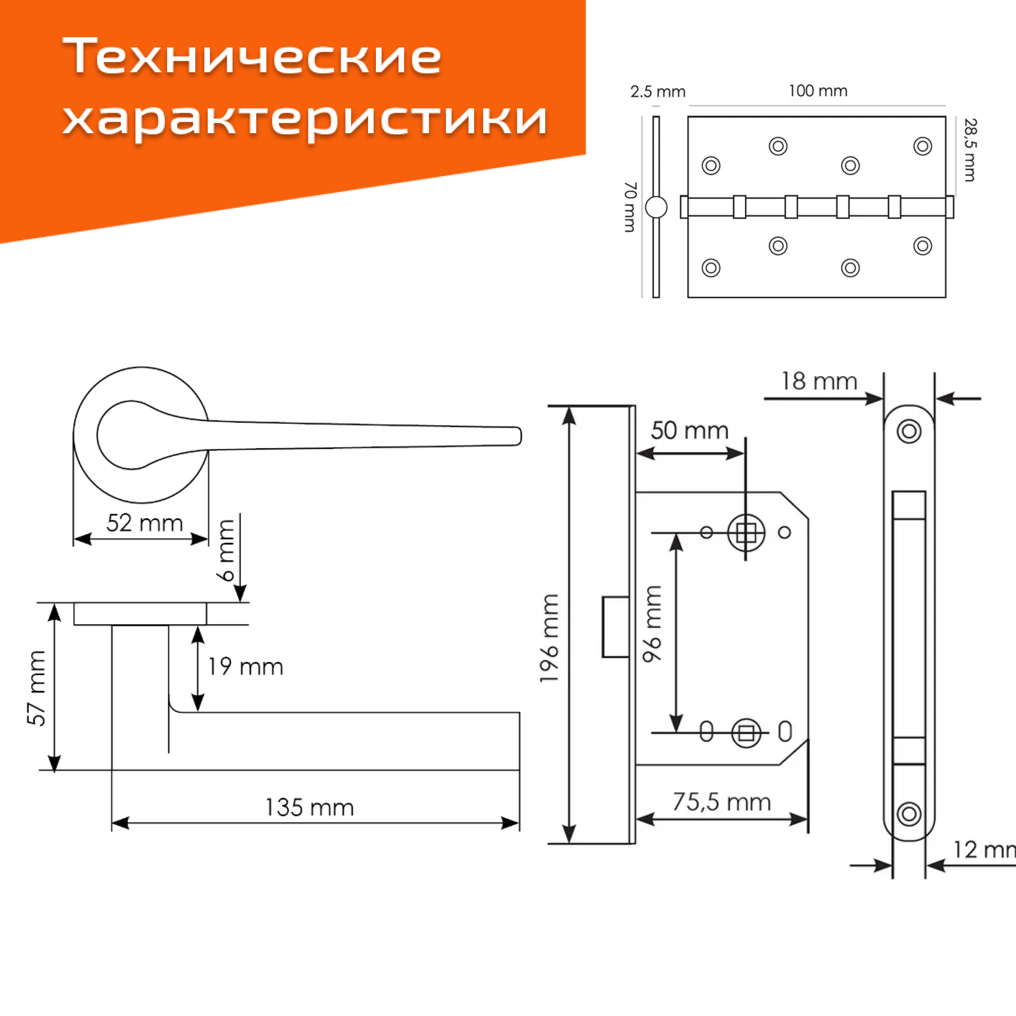 СохранитьКомплект для межкомнатной двери Morelli / Дверная ручка MH 60 R6 SC + межкомнатная защелка + врезные петли /Матовый хром интересное: