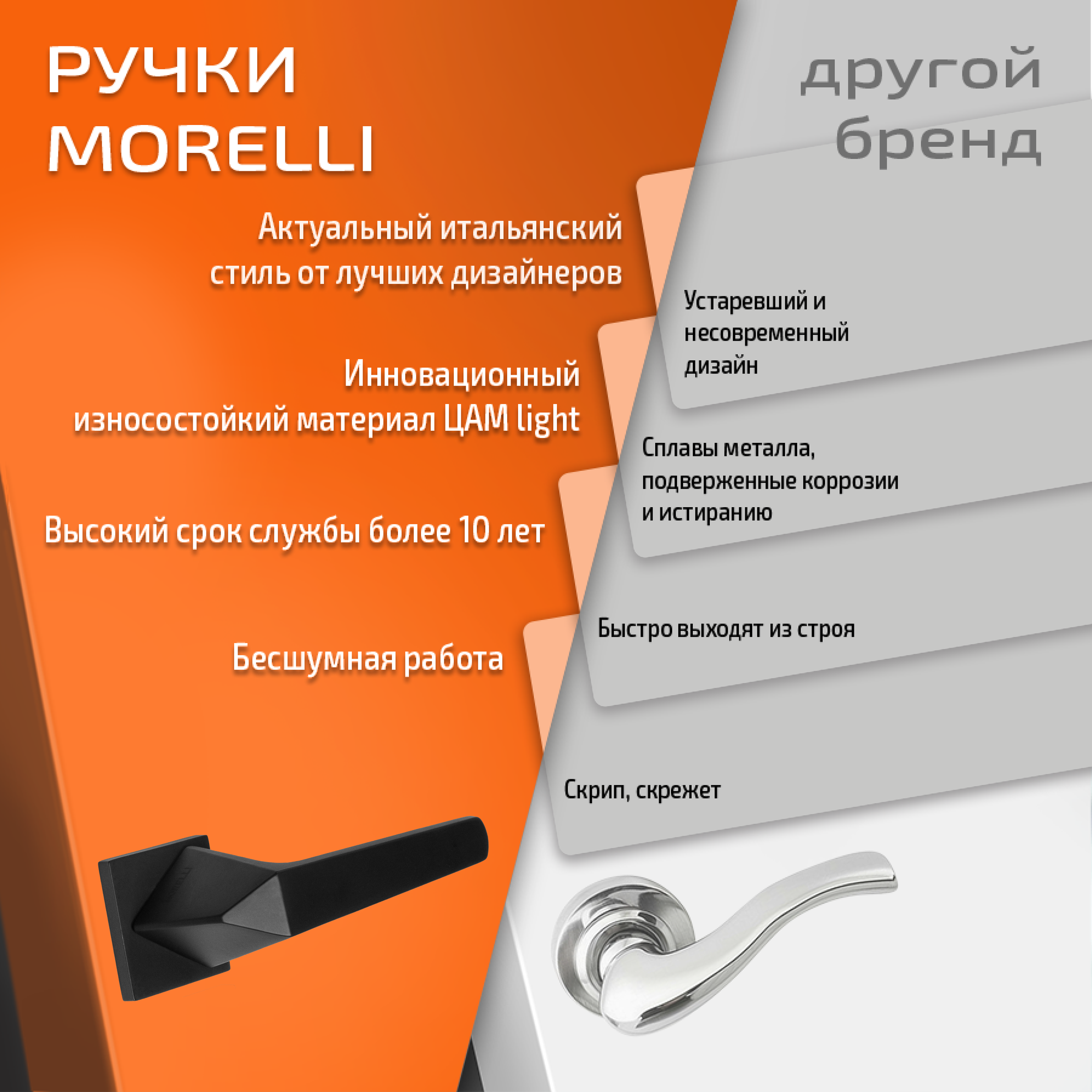 Комплект для межкомнатной двери Morelli / Дверная ручка MH 55 S6 SSC + поворотник + бесшумный замок + врезные петли / Супер матовый хром