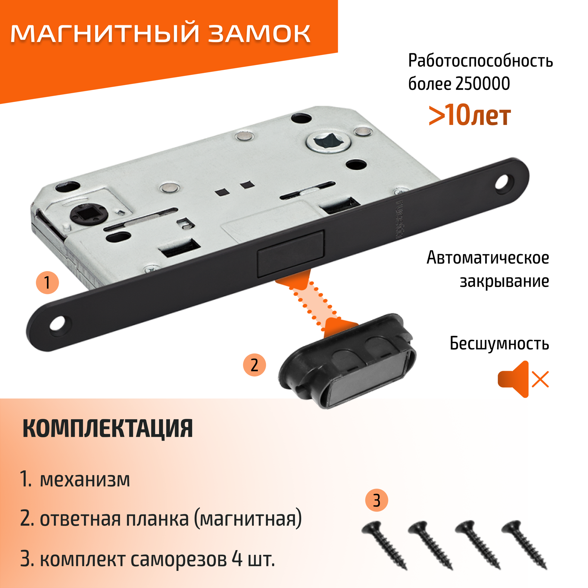 Комплект для межкомнатной двери Morelli / Дверная ручка MH 55 S6 BL + магнитный замок / черный матовый