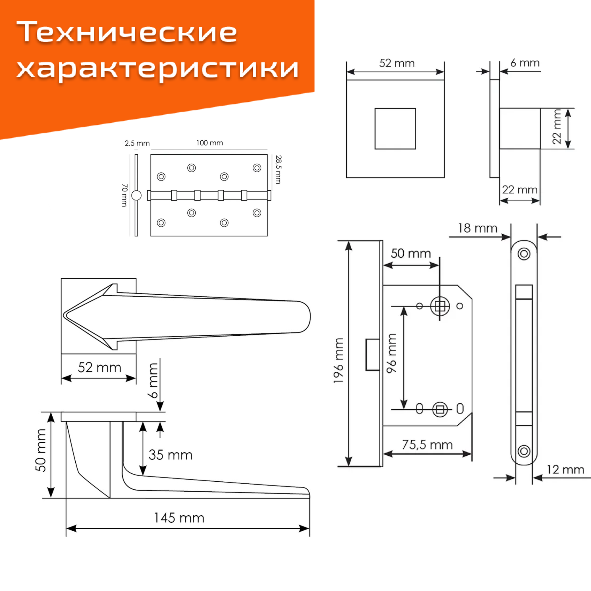 СохранитьКомплект для межкомнатной двери Morelli / Дверная ручка MH 55 S6 BL + поворотник + магнитный замок + врезные петли / черный матовый интересное: