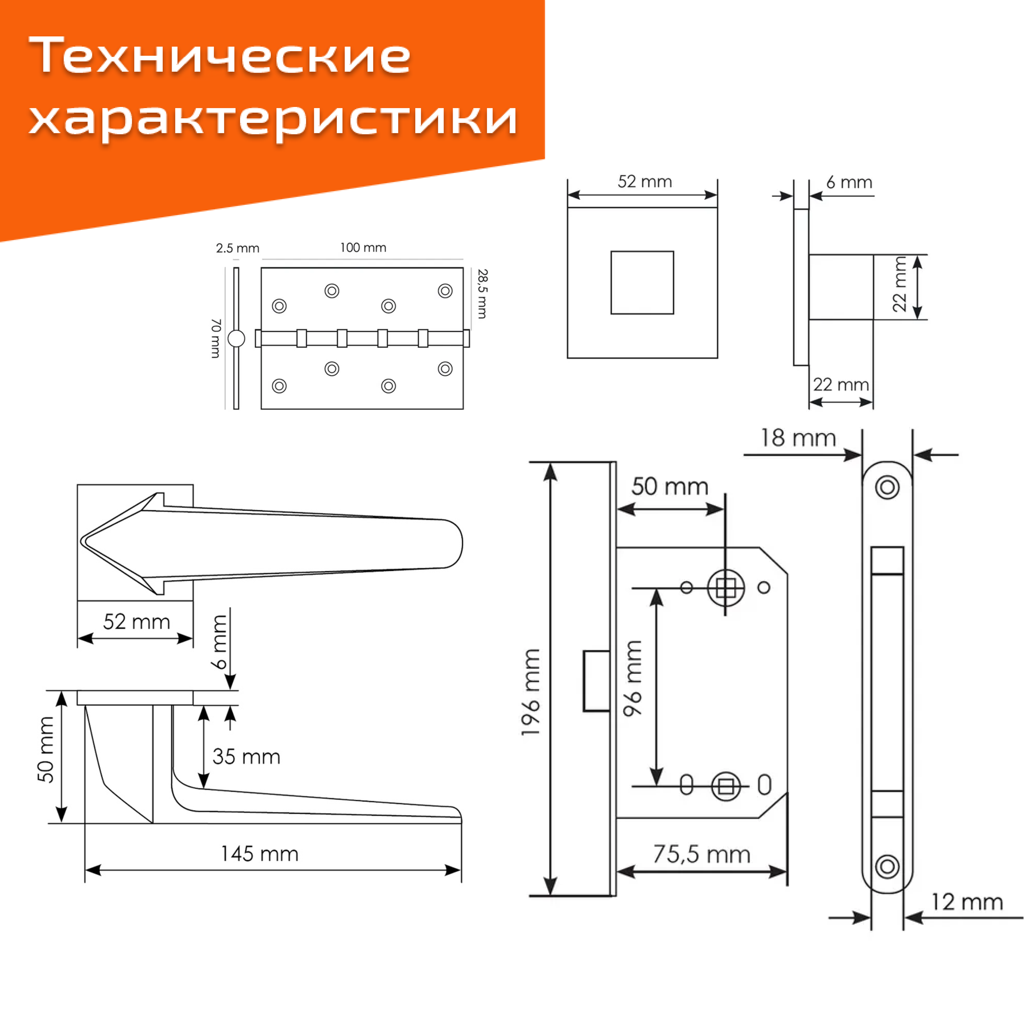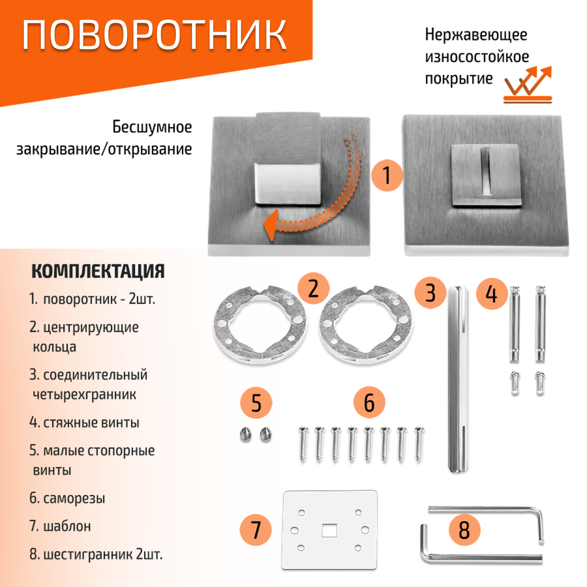 СохранитьКомплект для межкомнатной двери Morelli / Дверная ручка MH 55 S6 SSC + поворотник + бесшумный замок + врезные петли / Супер матовый хром интересное: