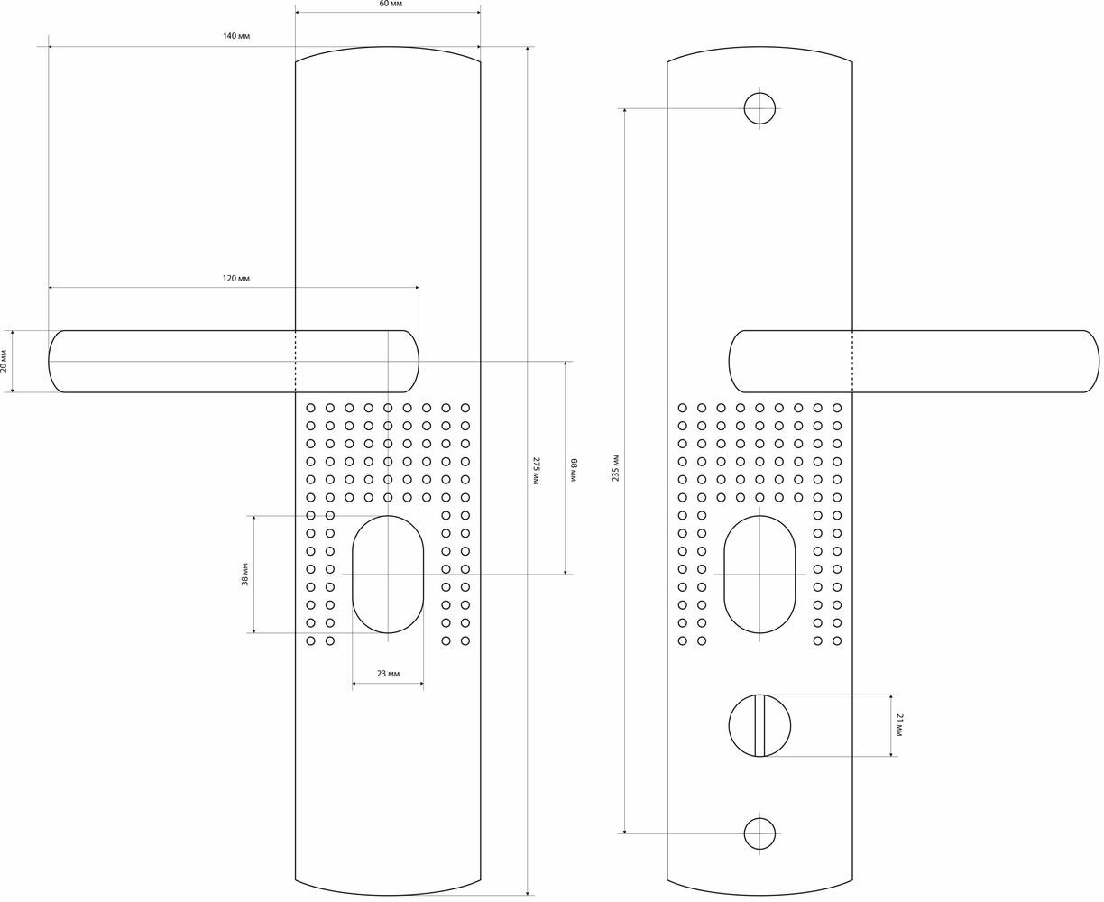 Дверная ручка левая универсальная с подсветкой для китайских металлических дверей стандарт РН-СТ222-1-L