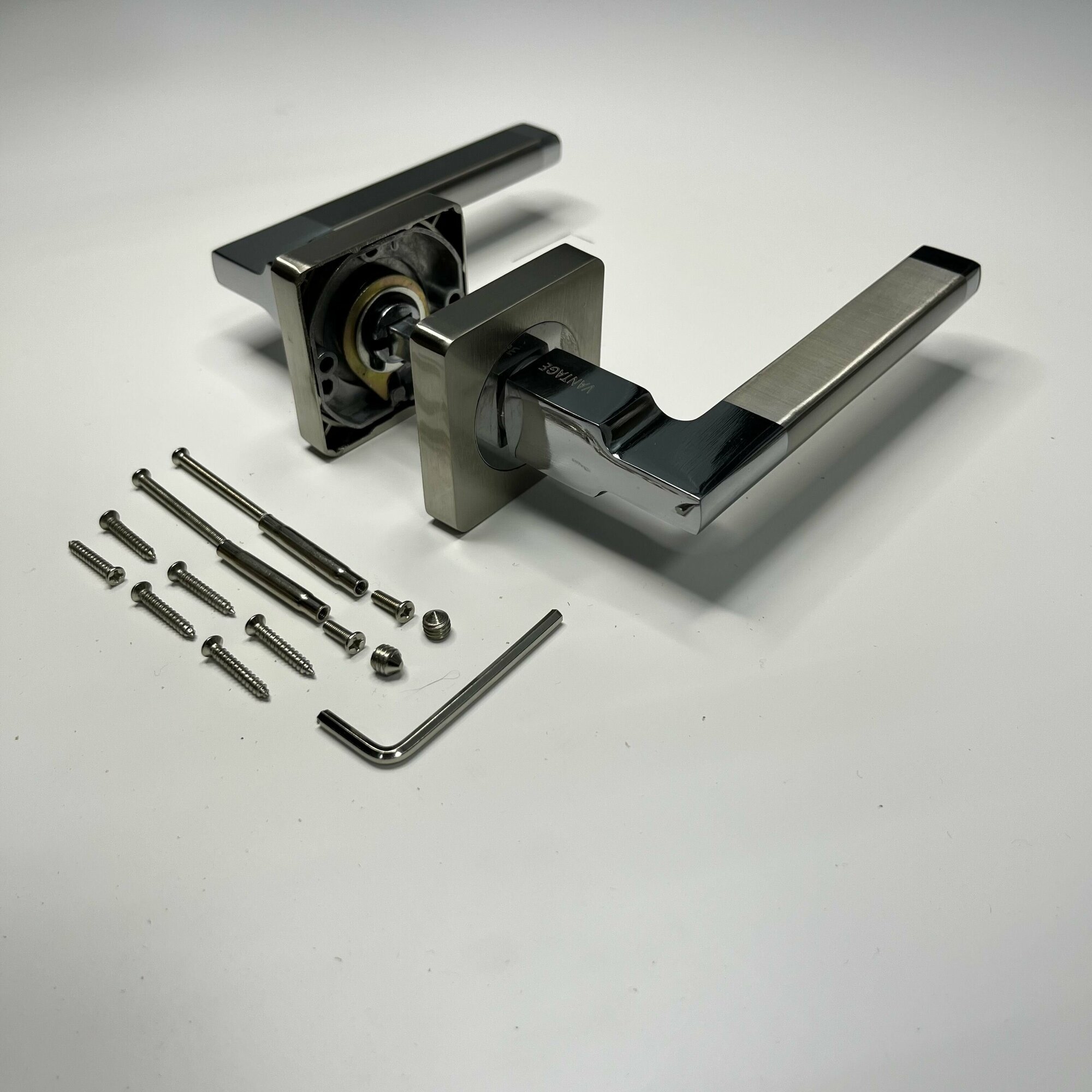 Ручка дверная на квадратной основе Vantage V 09 CP цвет: хром/белый