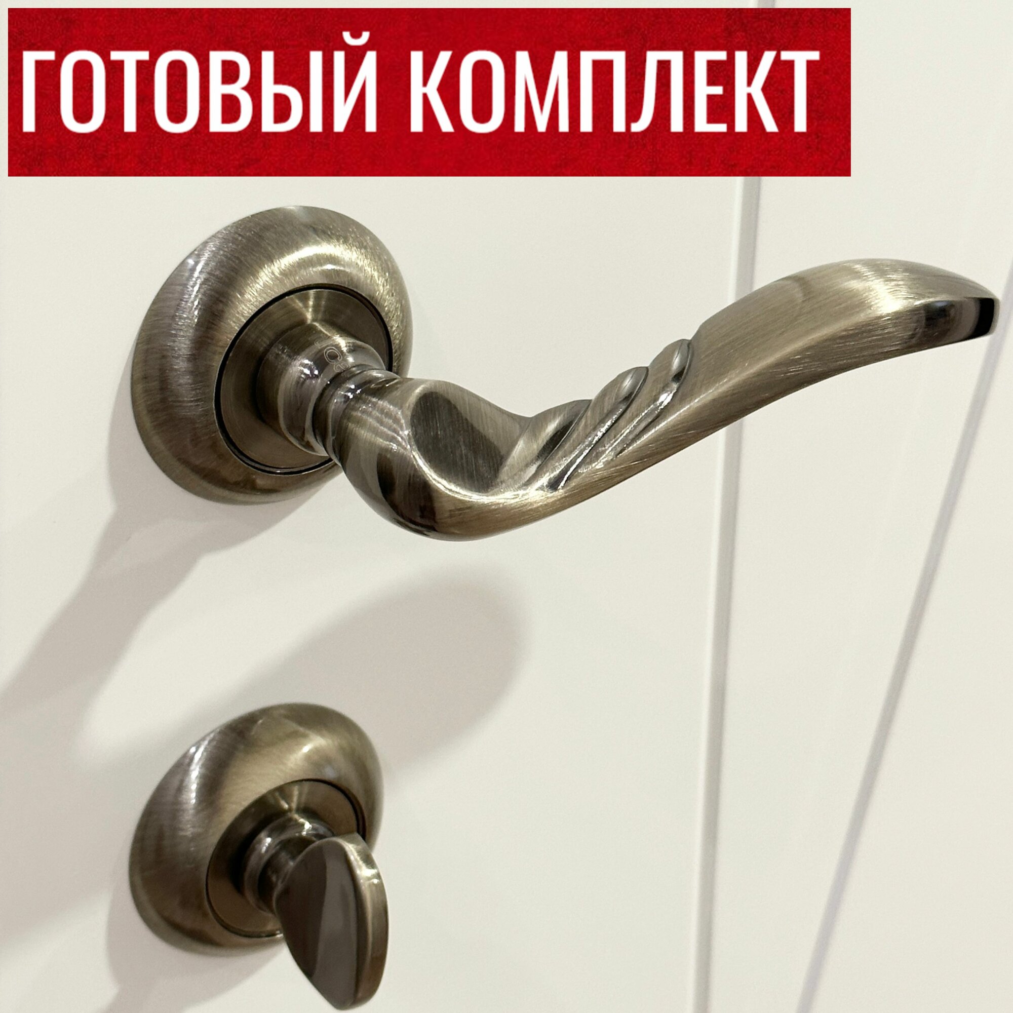 Дверная ручка Rucetti (Ручетти) RAP 9 AB + Межкомнатный замок RP1895 AB + Завертка сантехническая RAP WC AB / Межкомнатные дверные ручки с замком и фиксатором