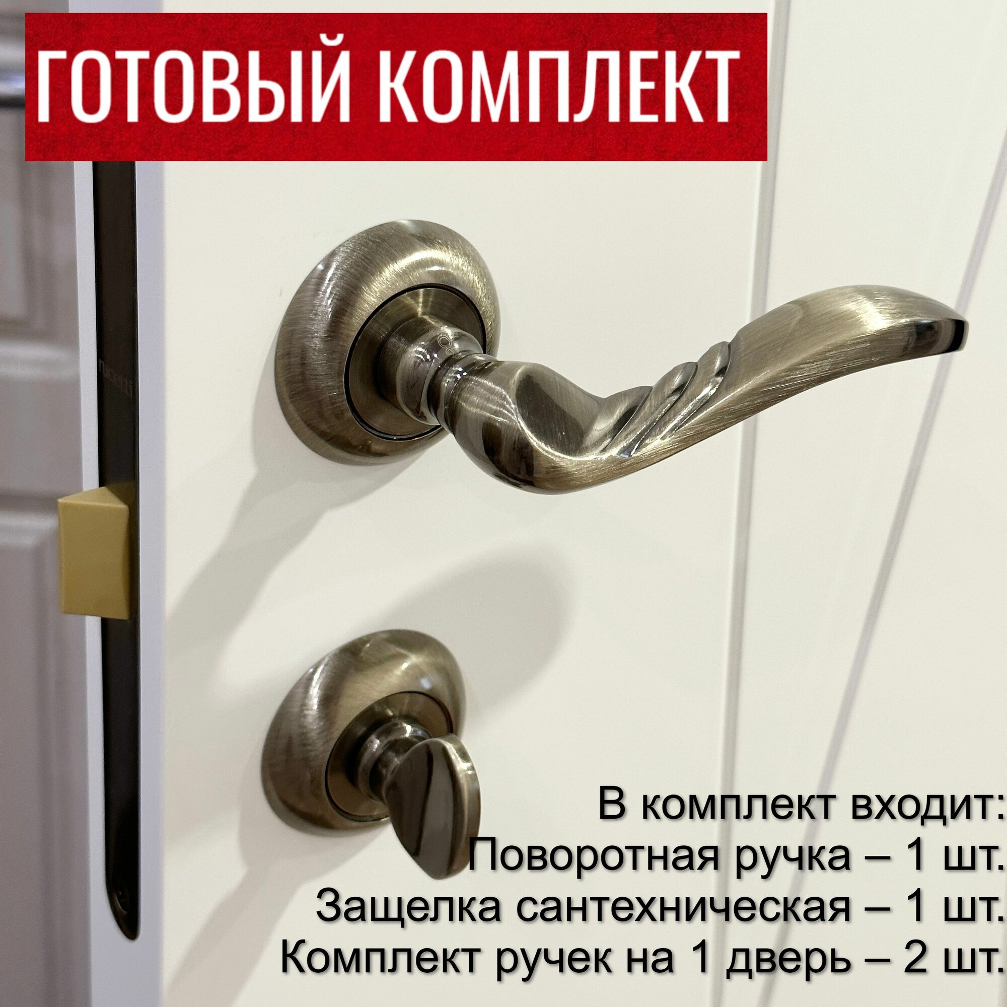 Купить Дверная ручка Rucetti (Ручетти) RAP 9 AB + Межкомнатный замок RP1895 AB + Завертка сантехническая RAP WC AB / Межкомнатные дверные ручки с замком и фиксатором
