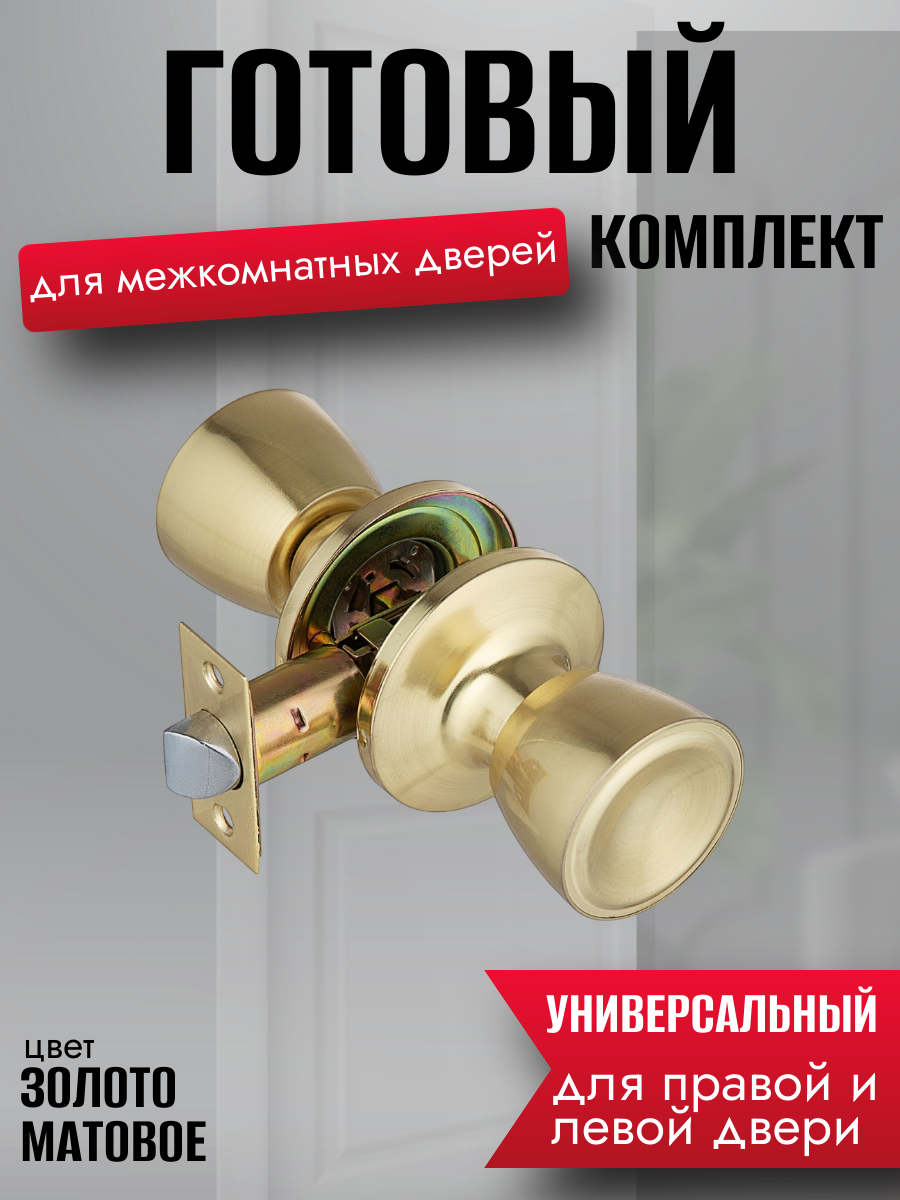 Купить Ручка дверная межкомнатная золото матовое с защелкой. сталь, круглые, комплект