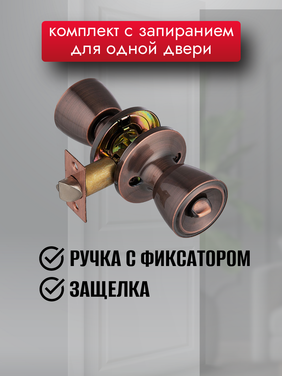 Ручка дверная межкомнатная бронза с защелкой. сталь, круглые, комплект