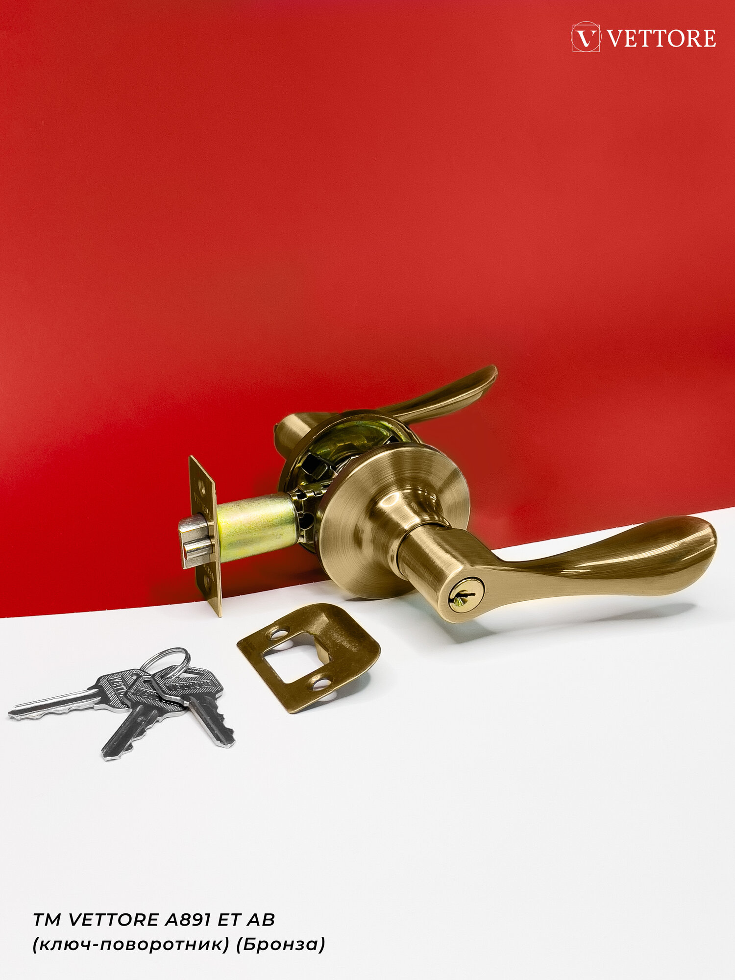 Купить 20135 Ручка - кноб (защелка) для межкомнатных дверей VETTORE A891 ET AB ключ - поворотник, в цвете AB (бронза)