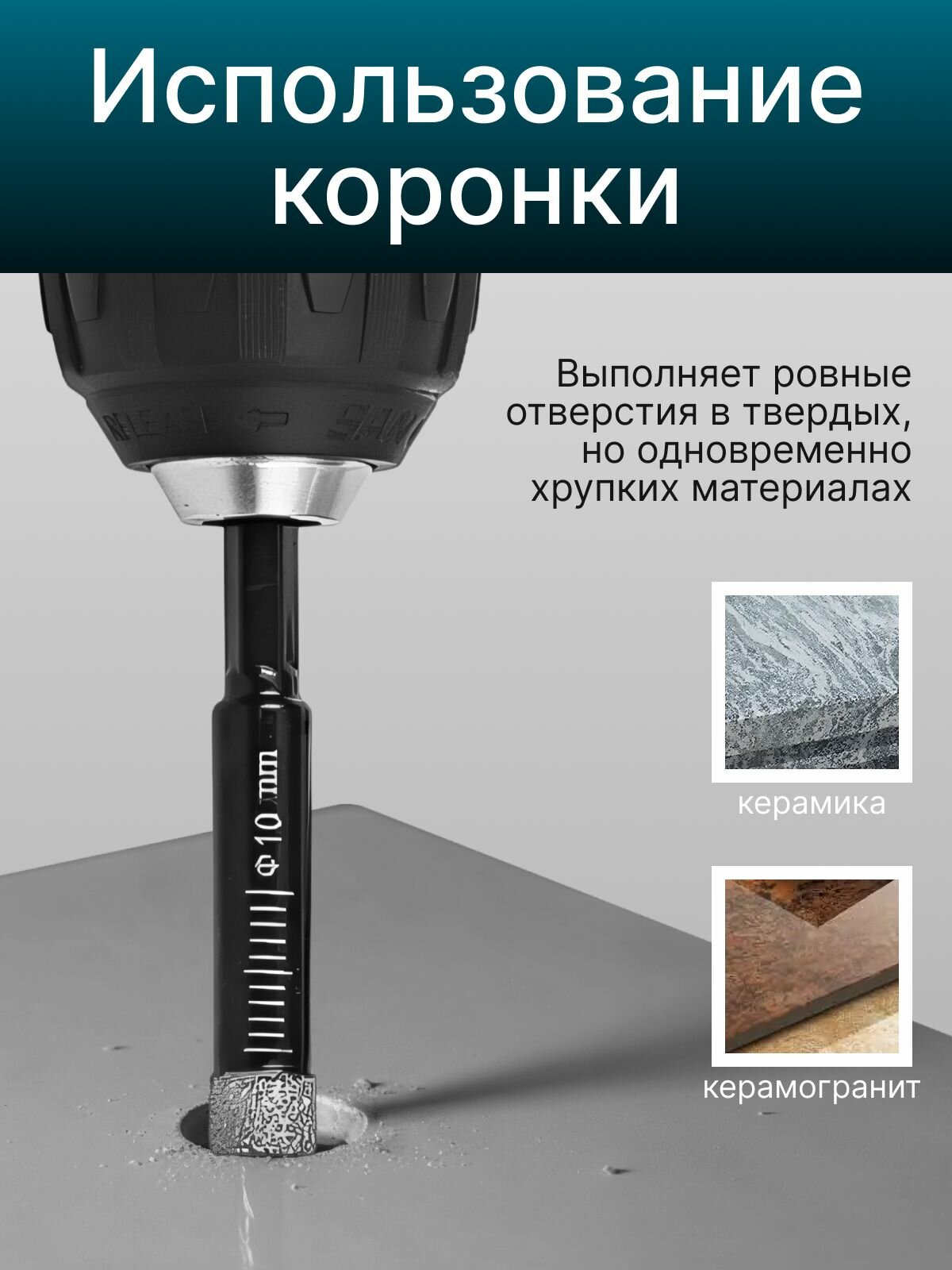 Алмазная коронка по керамограниту, плитке, кафелю 10 мм под шестигранник интересное: