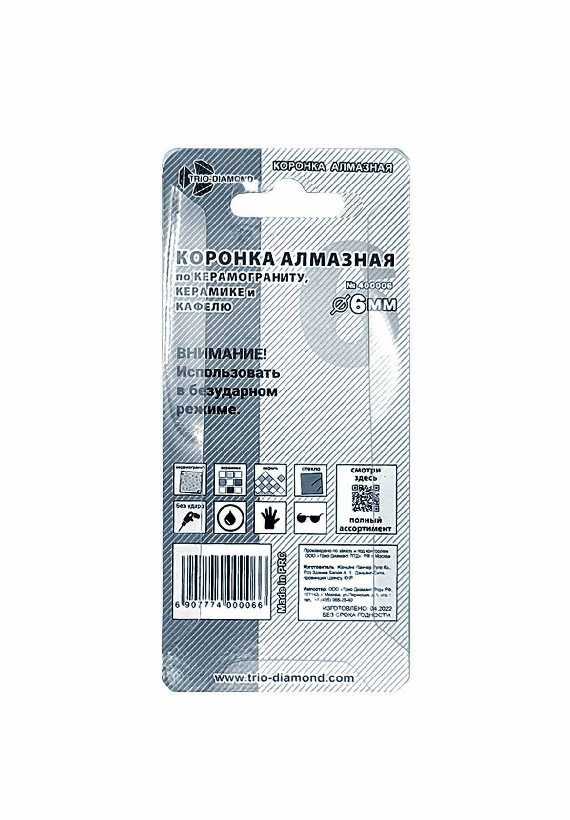 Купить Коронки алмазные TRIO DIAMOND для сверления керамики и керамогранита, 06 мм, 2 штуки
