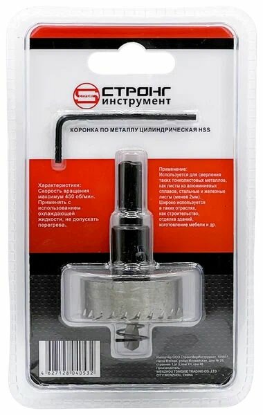 Коронка по металлу с победитом с центрирующим сверлом 60 мм STRONG СТК-045, СТК-04500060