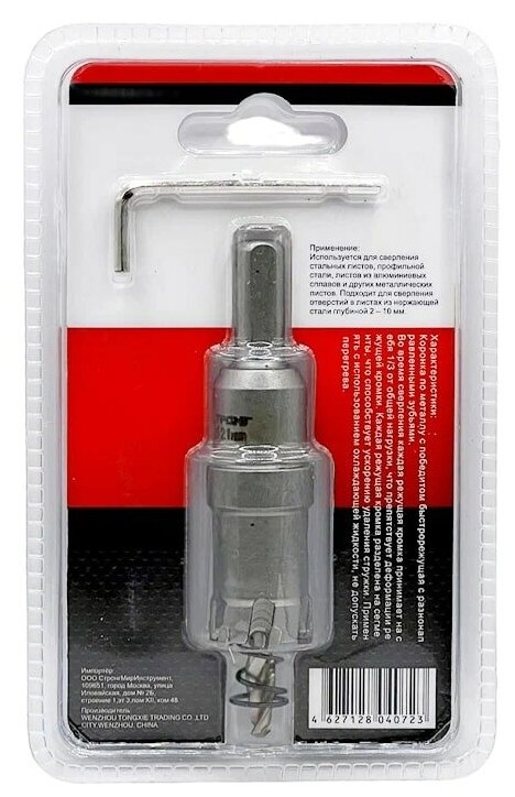 Коронка по металлу с победитом и центрирующим сверлом Strong 22 мм