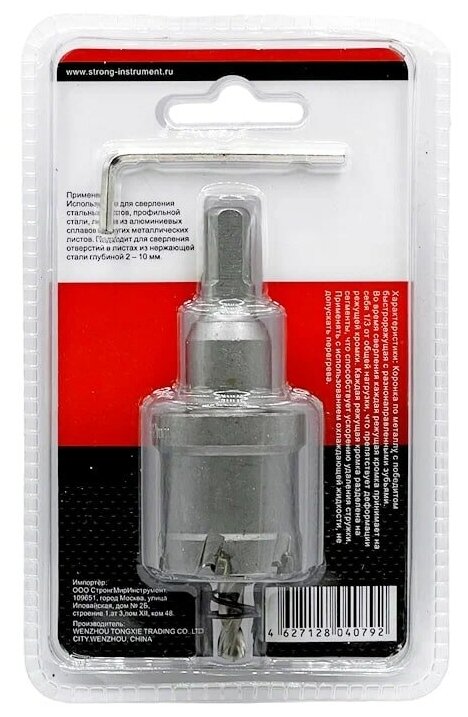 Коронка по металлу с победитом с центрирующим сверлом 60 мм STRONG СТК-045, СТК-04500060