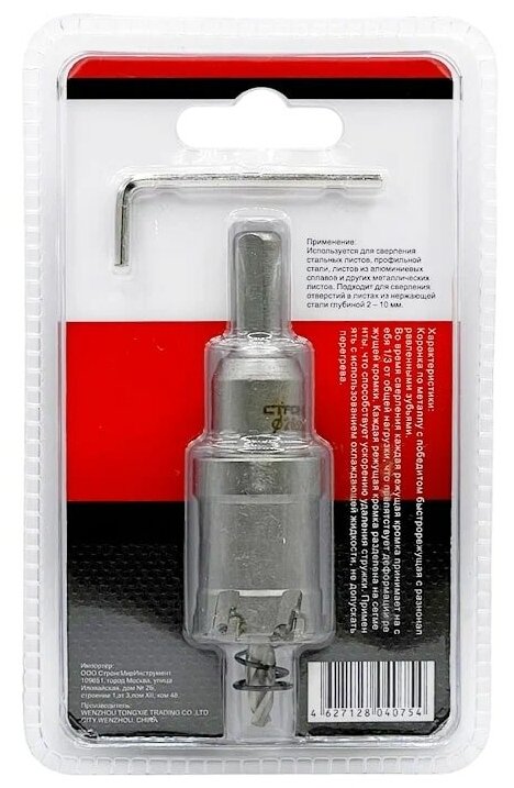 Коронка по металлу с победитом и центрирующим сверлом Strong 20 мм