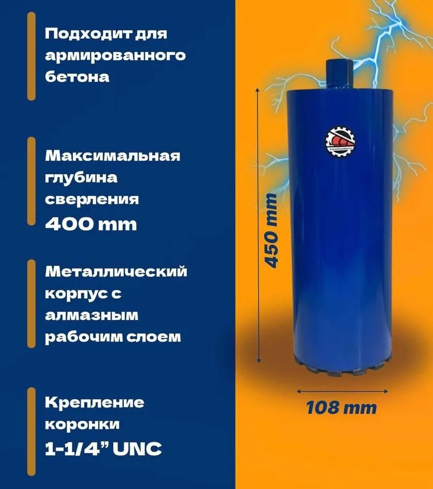 Коронка АлмазПромВектор, алмазная, для мокрого сверления, металл, 108мм x 450мм интересное: