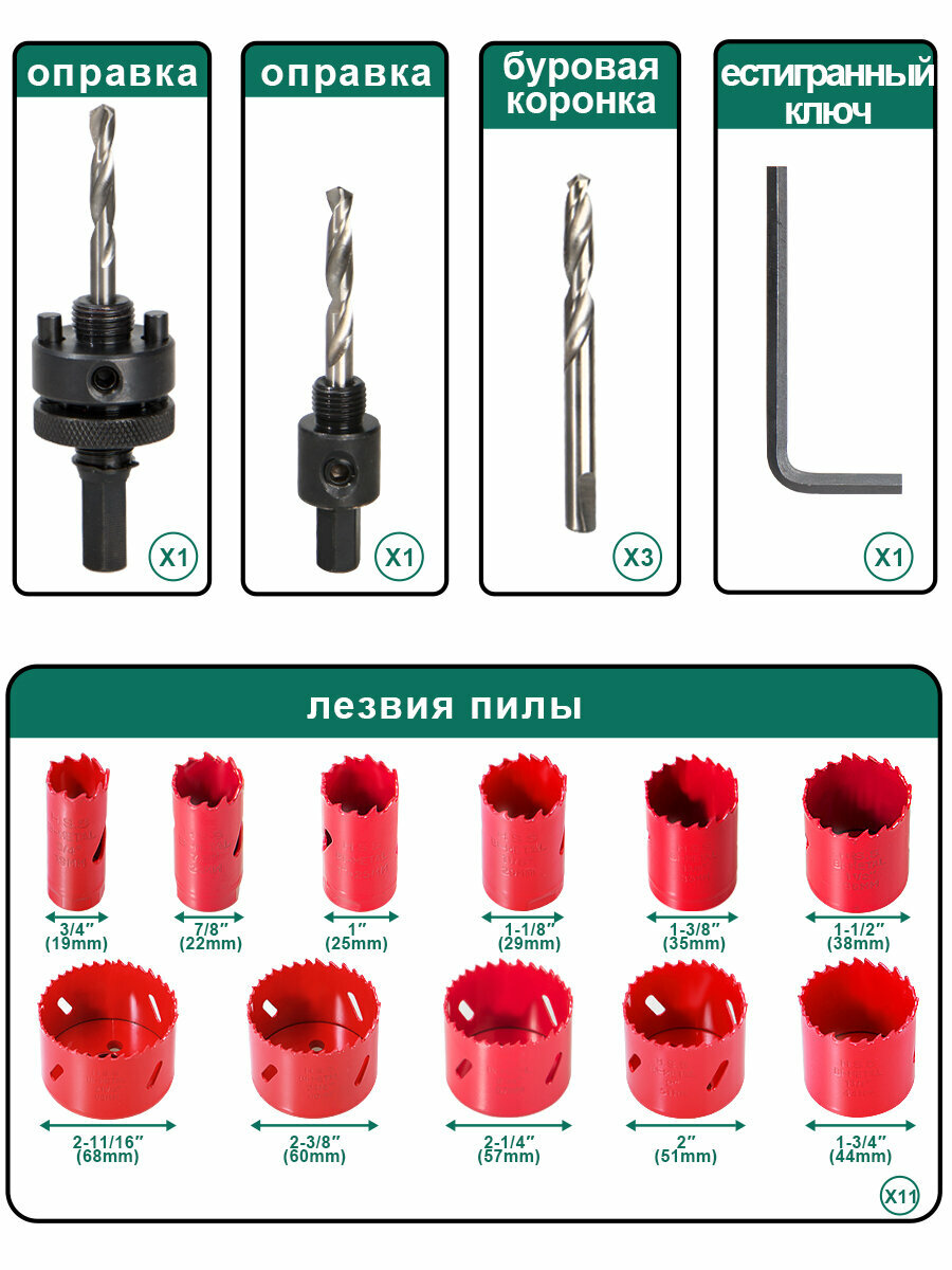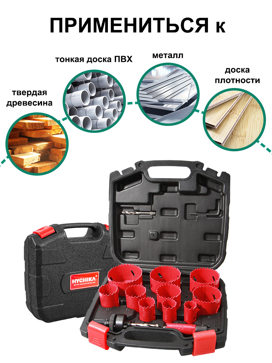 Биметаллическая кольцевая пила HYCHIKA, диаметр 20-68 мм, набор из 17 предметов. интересное:
