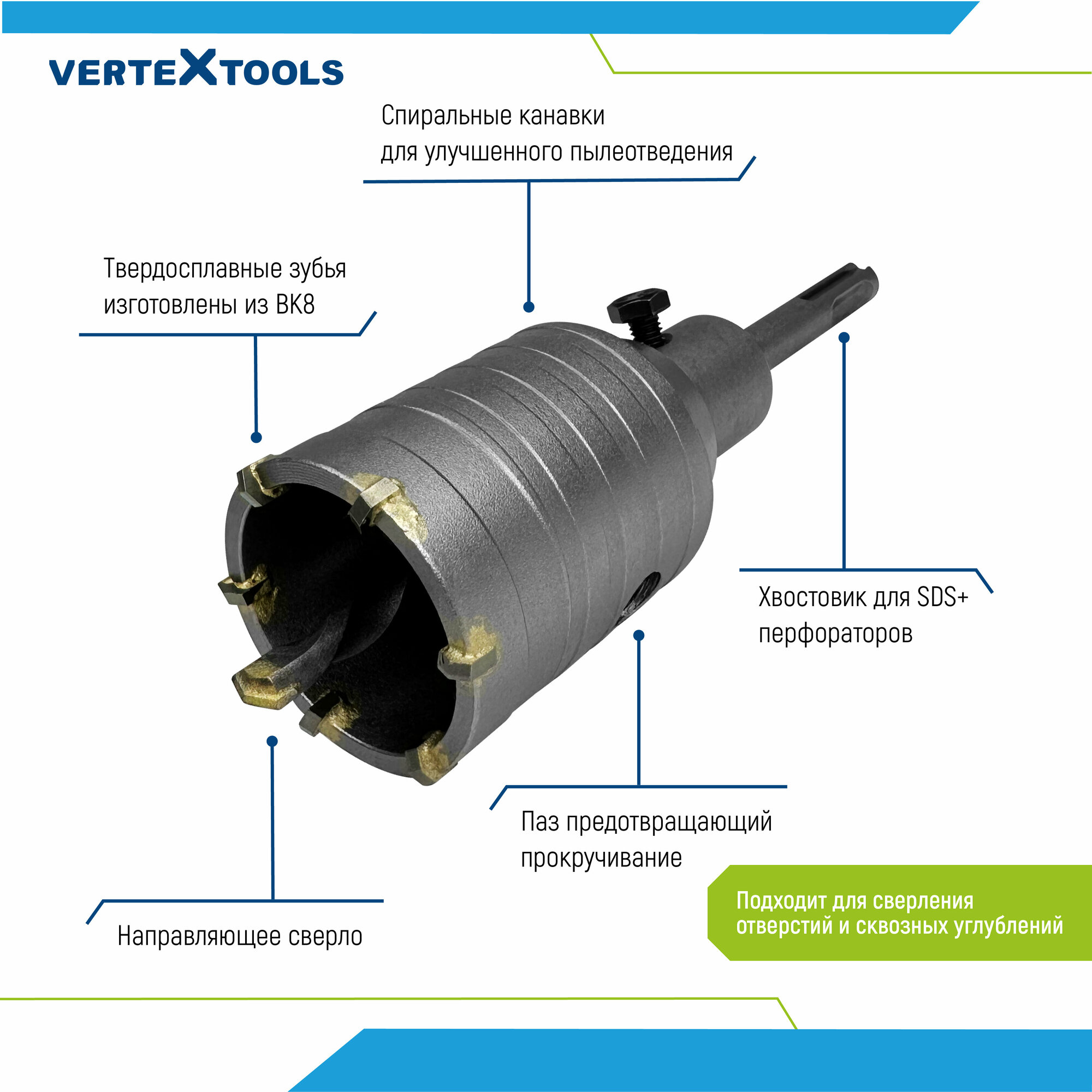 Коронка по бетону VertexTools в сборе 60мм с хвостовиком SDS-PLUS