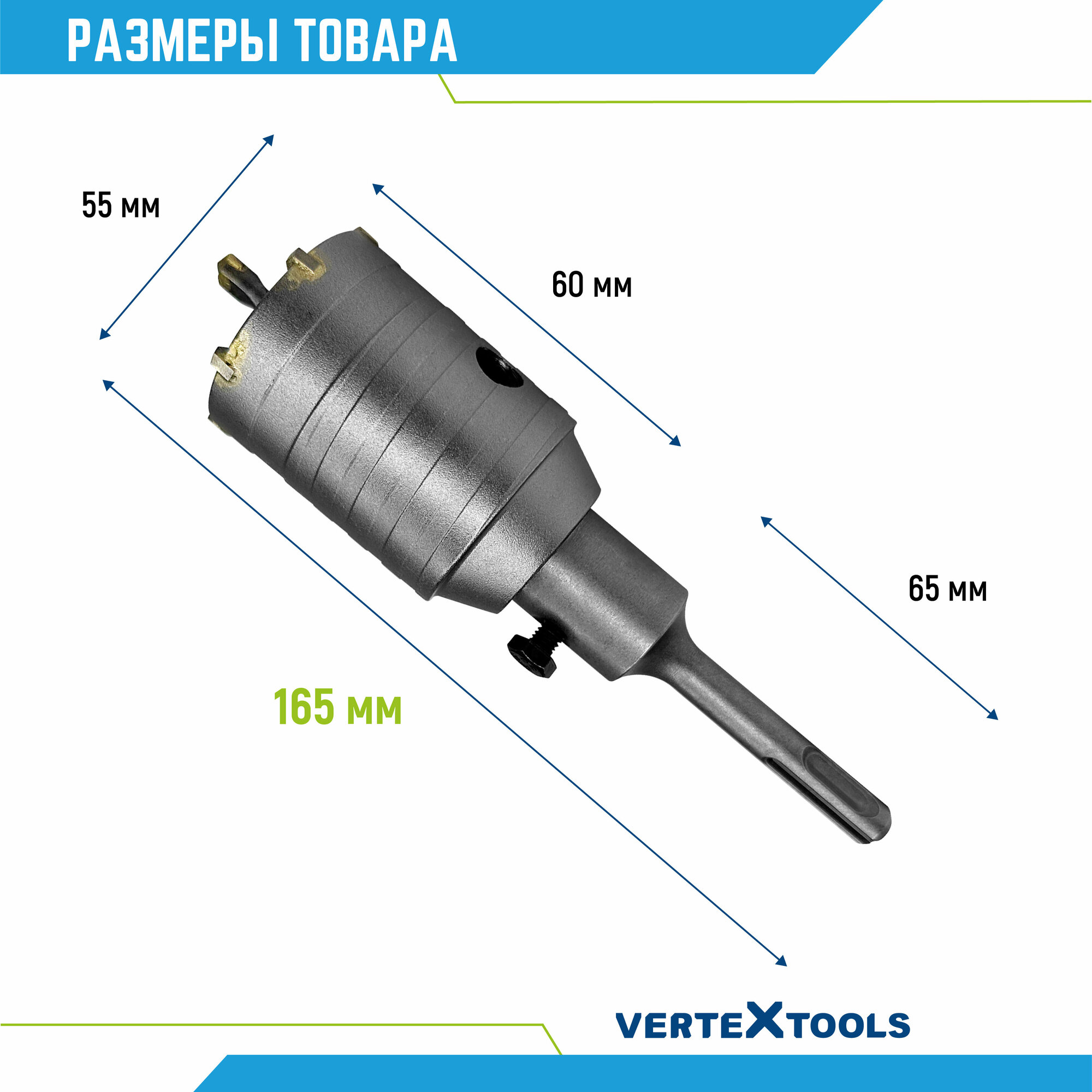 Купить Коронка по бетону VertexTools в сборе 55мм с хвостовиком SDS-PLUS