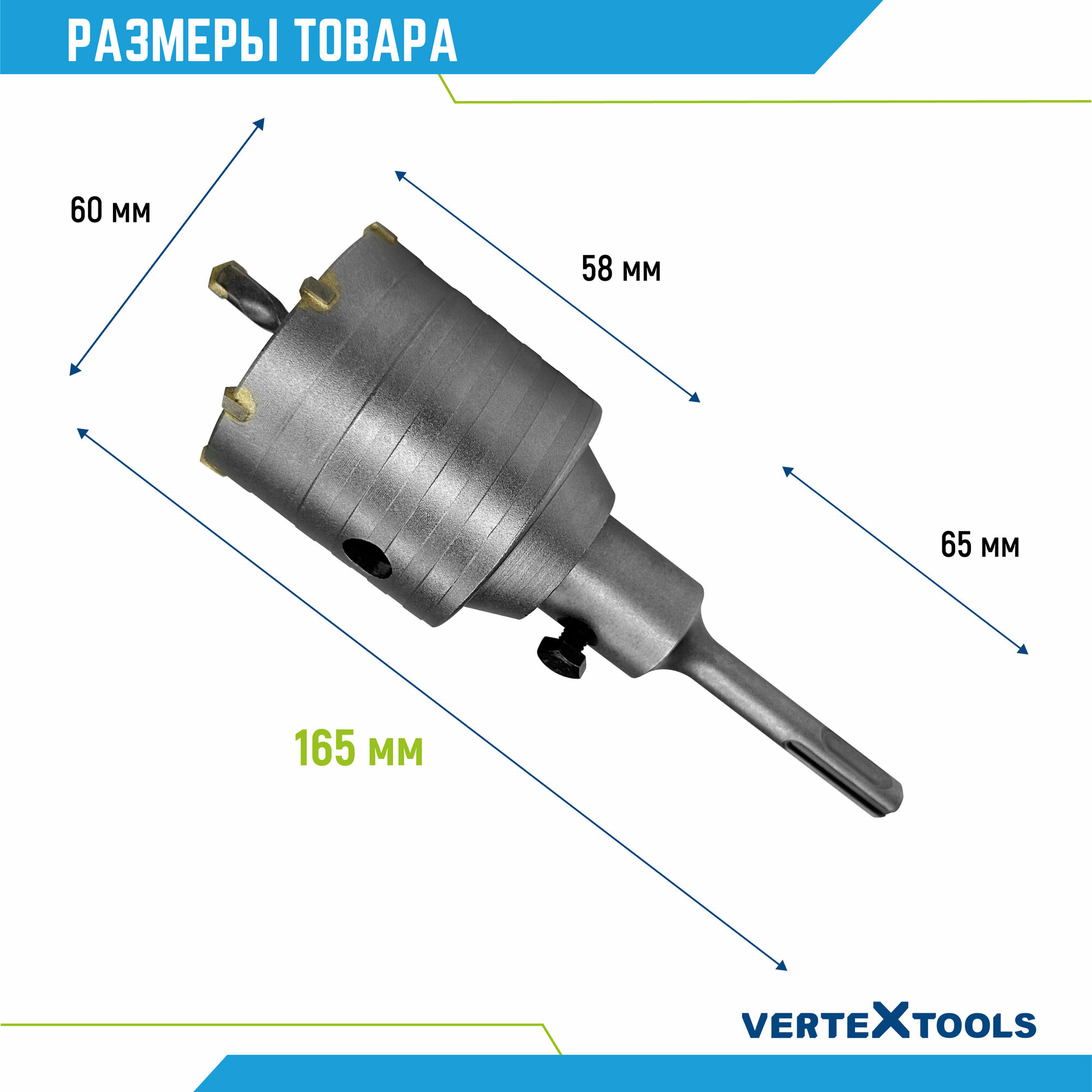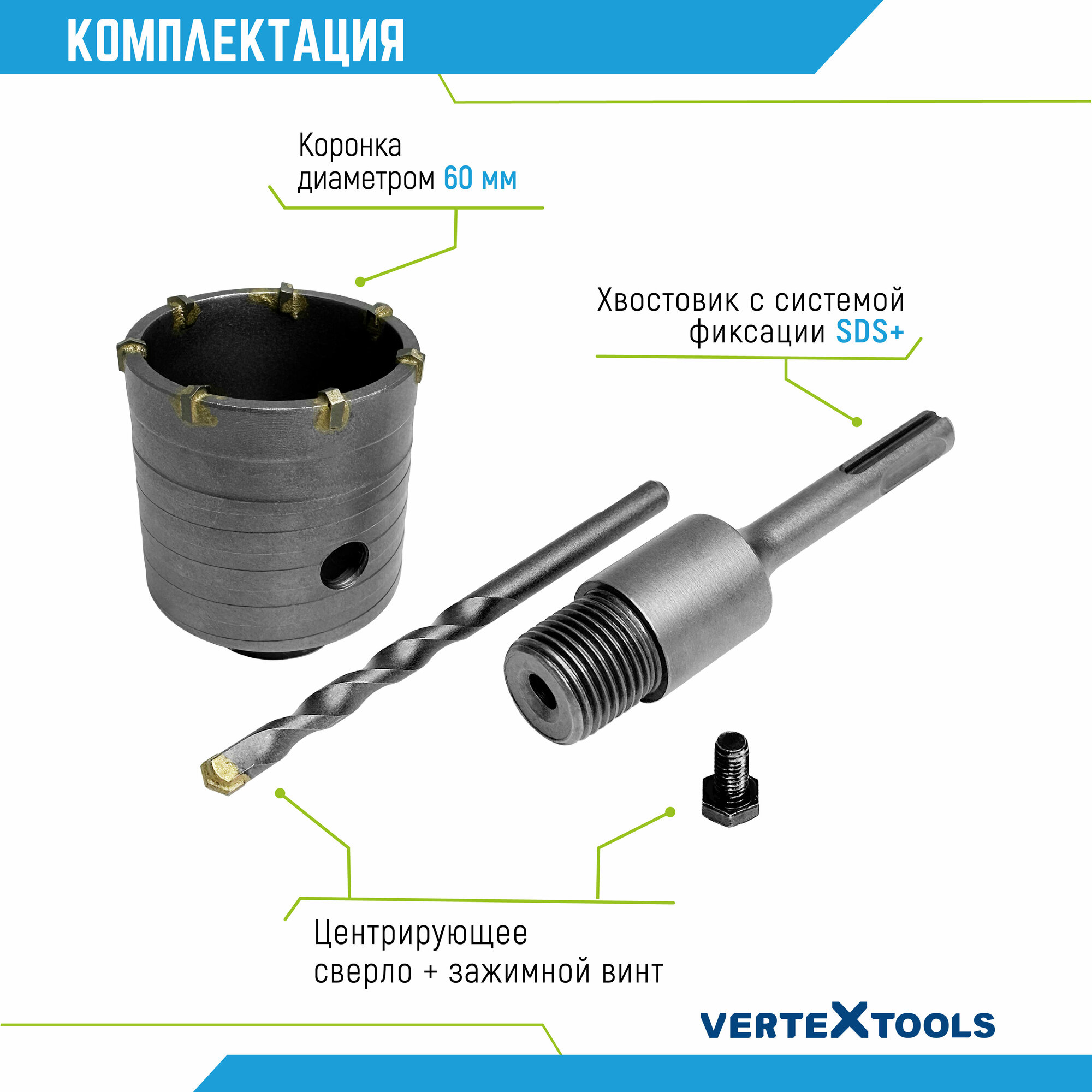 Купить Коронка по бетону VertexTools в сборе 60мм с хвостовиком SDS-PLUS