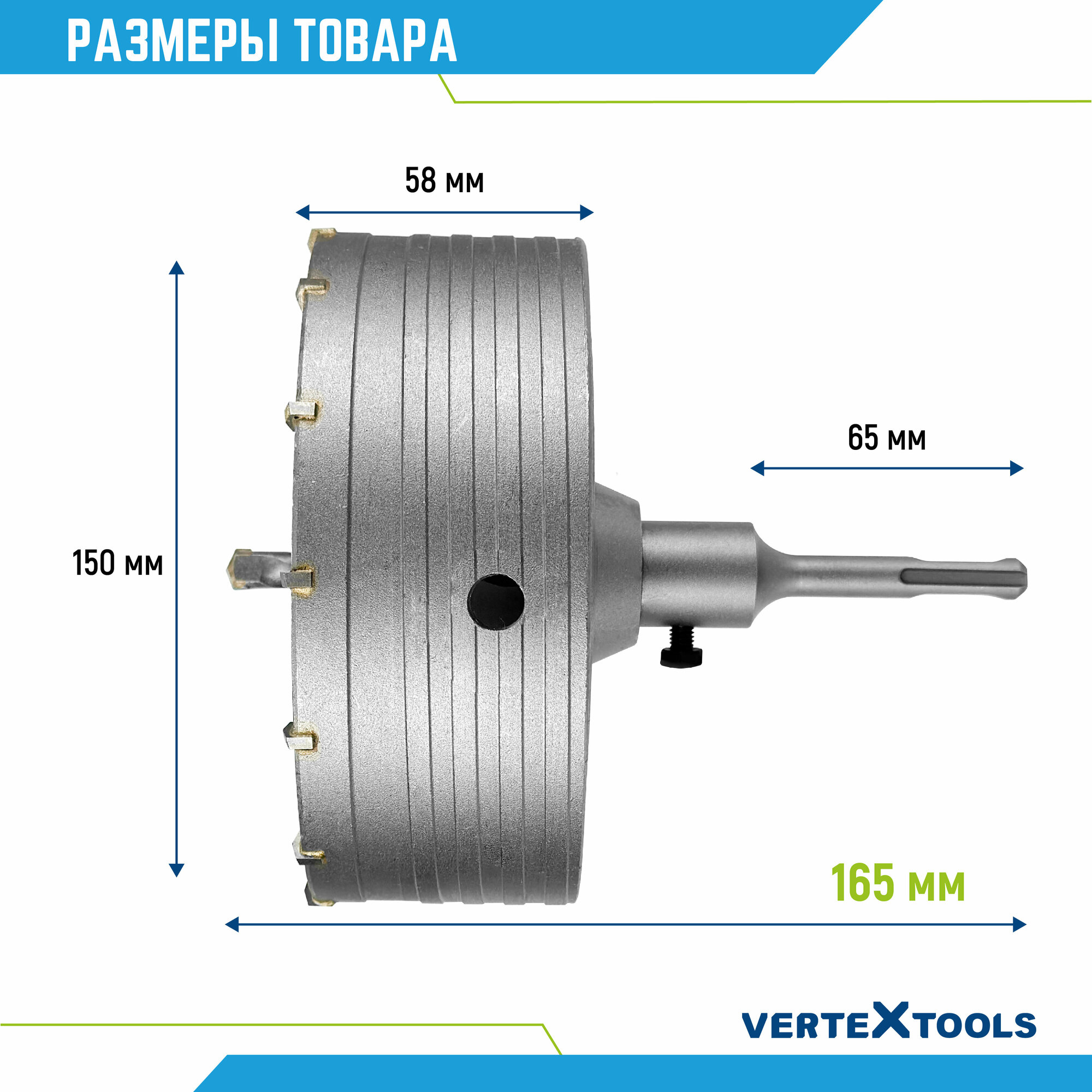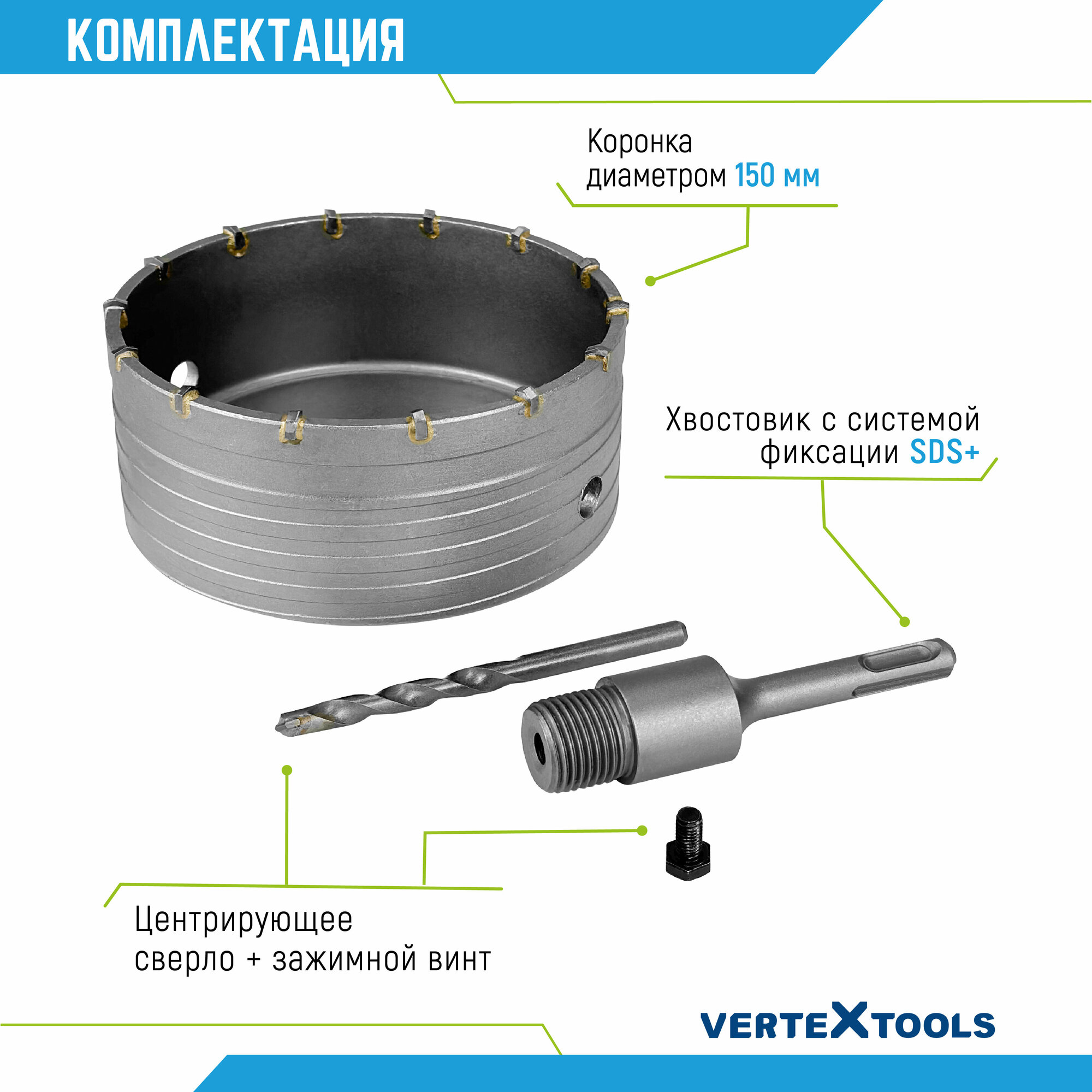 Купить Коронка по бетону VertexTools в сборе 150мм с хвостовиком SDS-PLUS