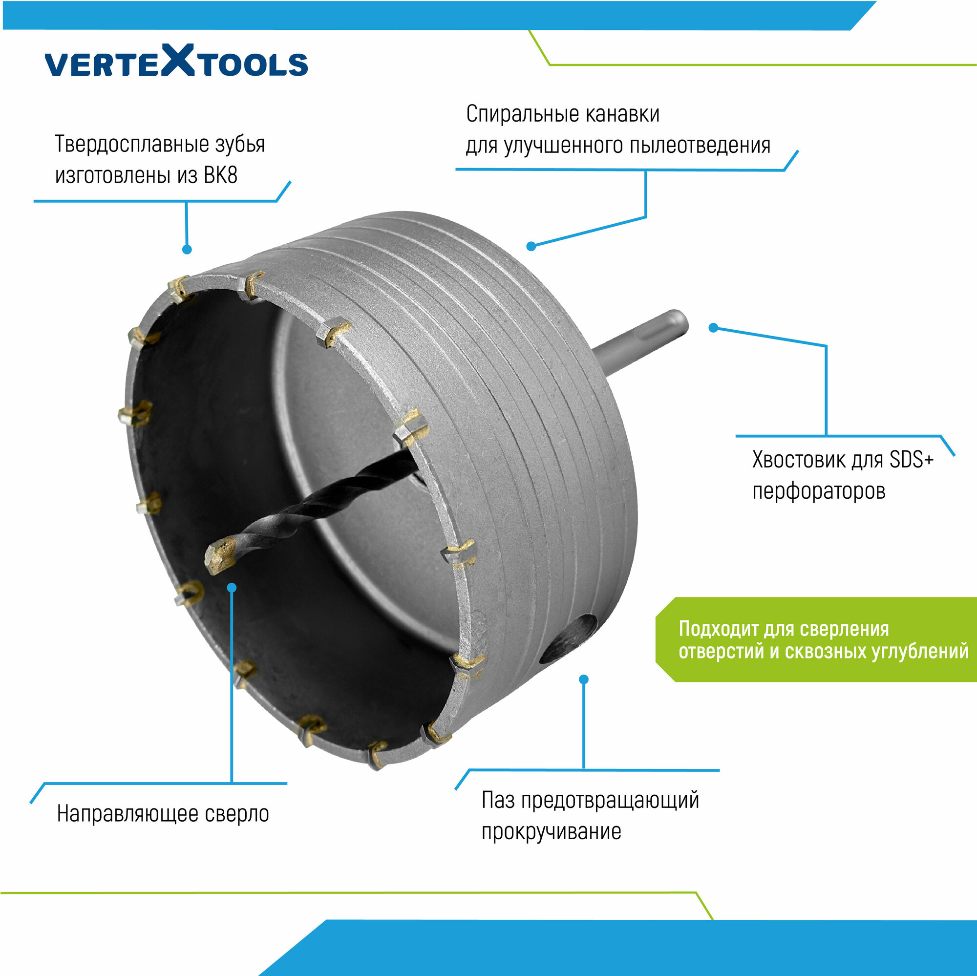 Коронка по бетону VertexTools в сборе 110мм с хвостовиком SDS-PLUS
