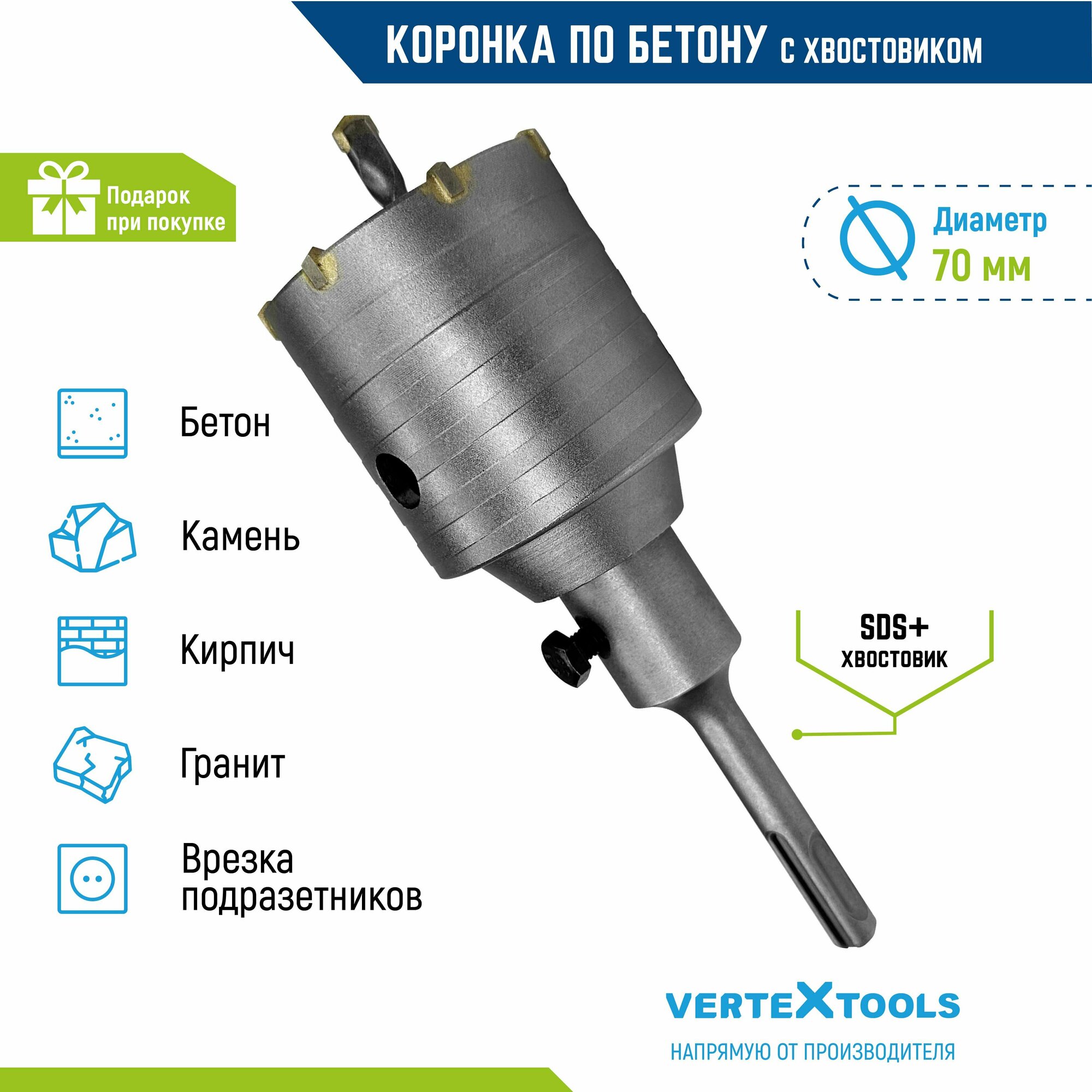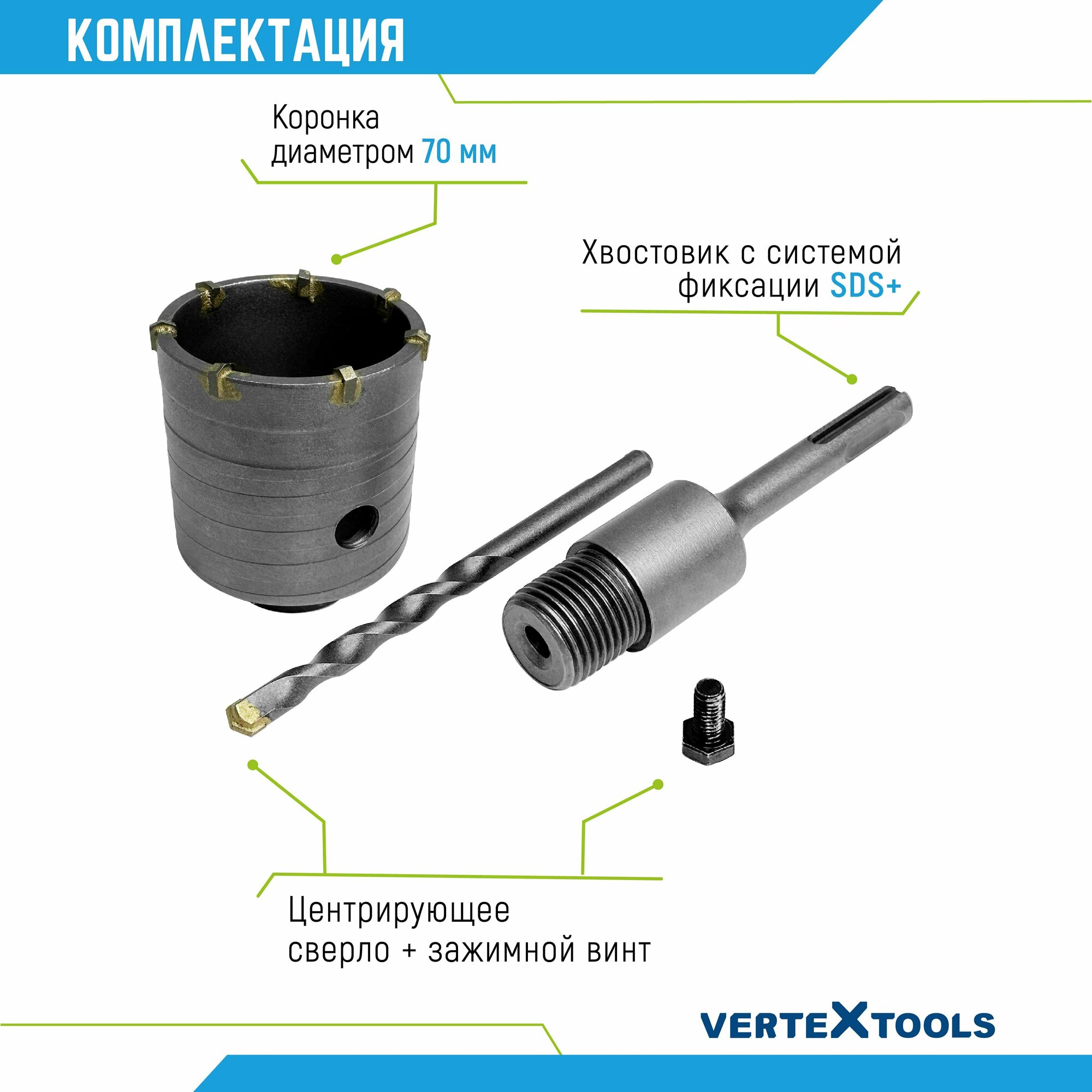 Купить Коронка по бетону VertexTools в сборе 70мм с хвостовиком SDS-PLUS