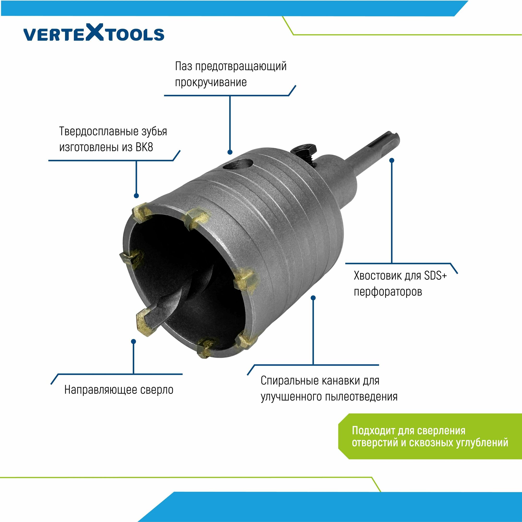 Коронка по бетону VertexTools в сборе 60мм с хвостовиком SDS-PLUS