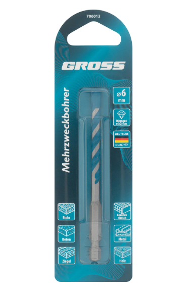 Купить Сверло универсальное Gross Multipurpose PRO, 6 мм, по дереву, металлу, бетону и плитке, ВК8, 6-гранный хвостовик, 706012