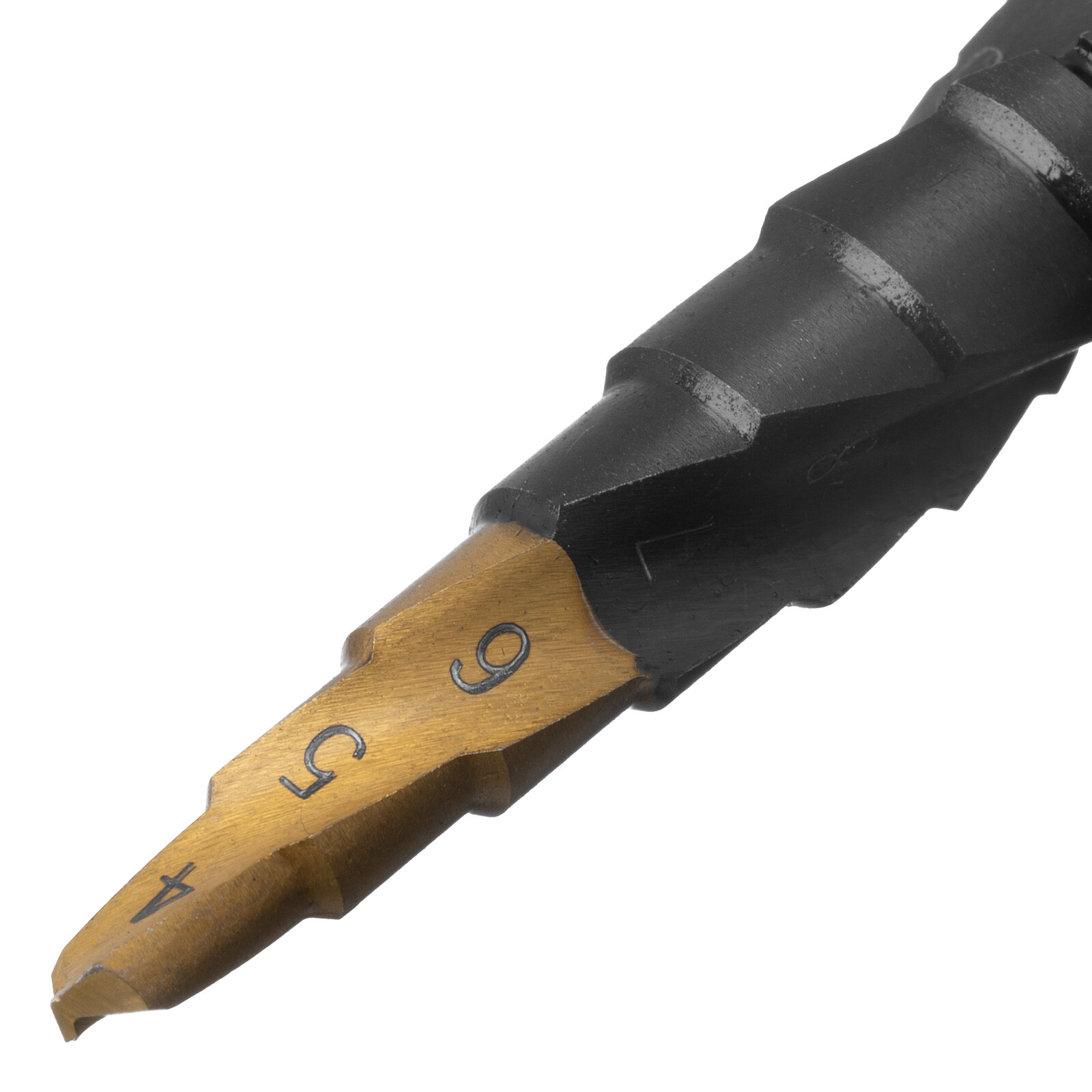 Сверло ступенчатое Denzel 4-6-8-10-12-14-16-18-20-22-24-26-28-30-32 мм, Р6М5, 6-гр. хвостовик 723606