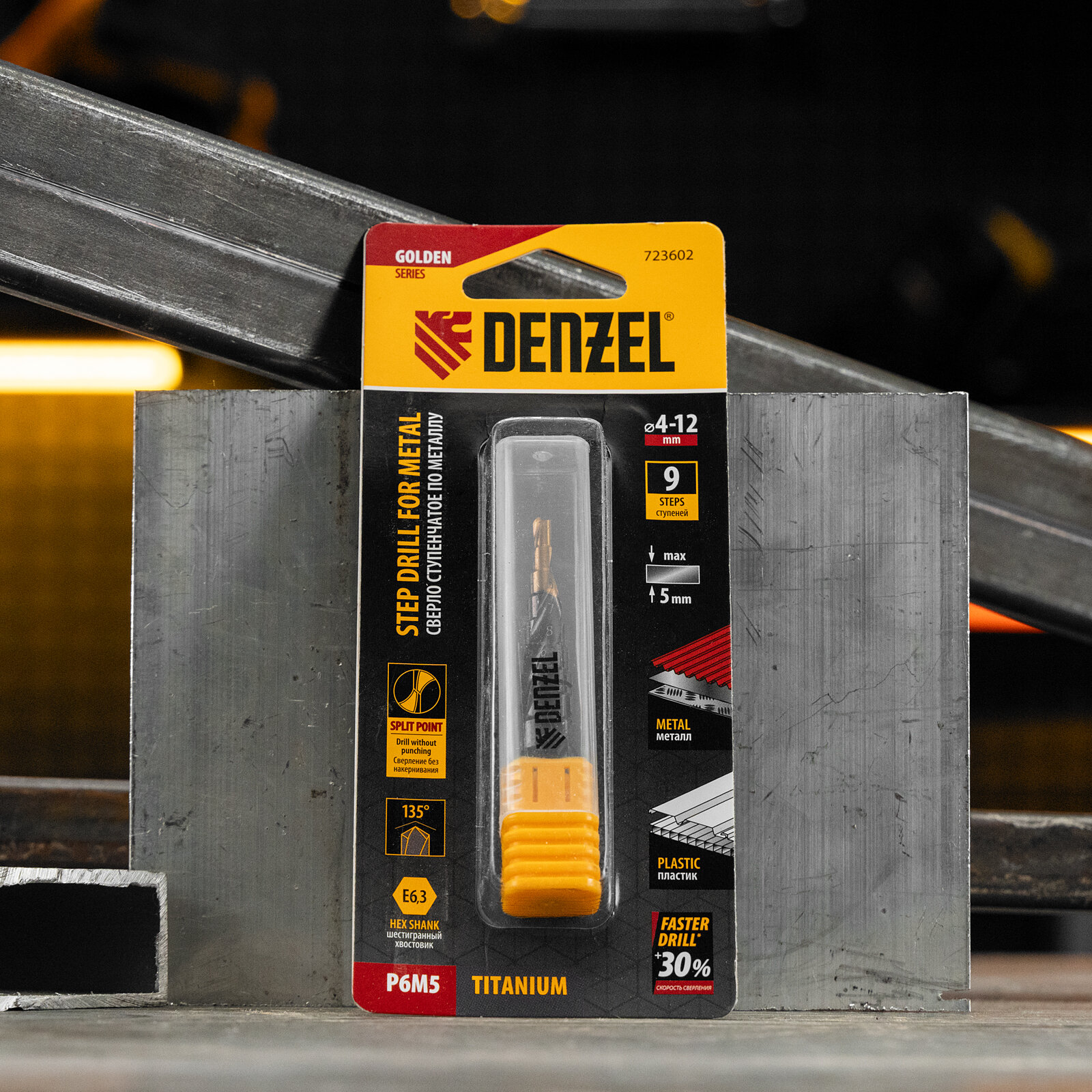 Сверло ступенчатое Denzel 4-5-6-7-8-9-10-11-12 мм, Р6М5, 6-гр. хвостовик 723602 интересное: