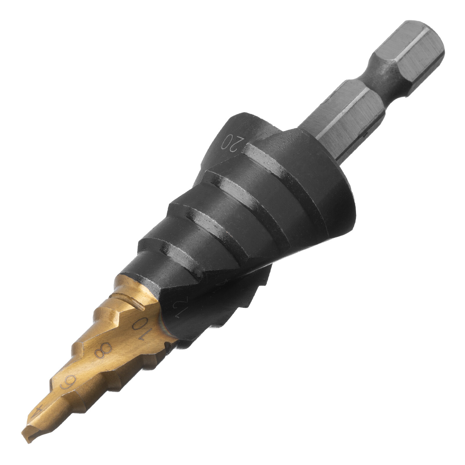 Купить Сверло ступенчатое Denzel 4-6-8-10-12-14-16-18-20 мм, Р6М5, 6-гр. хвостовик 723603