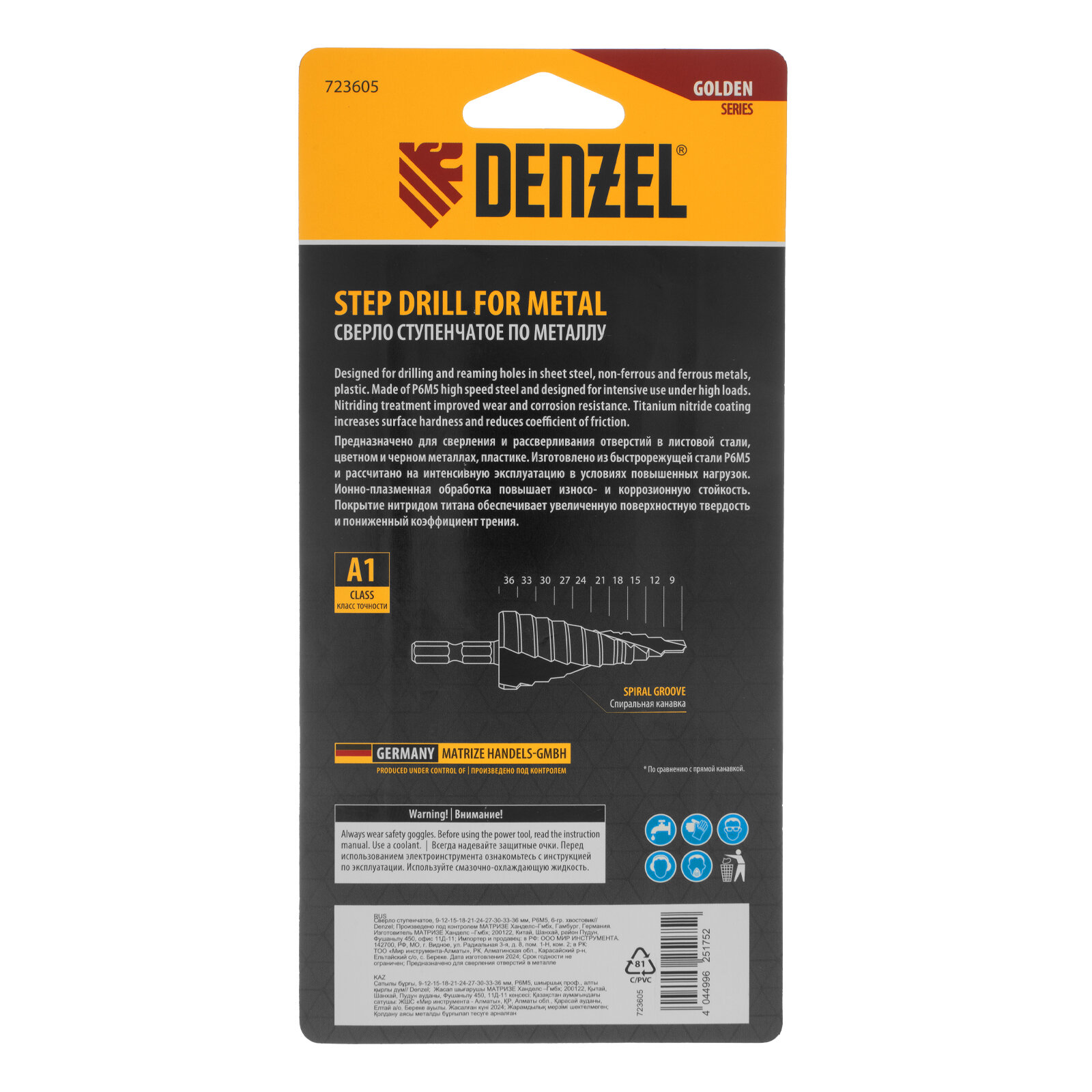 Сверло ступенчатое Denzel 9-12-15-18-21-24-27-30-33-36 мм, Р6М5, 6-гр. хвостовик 723605 интересное:
