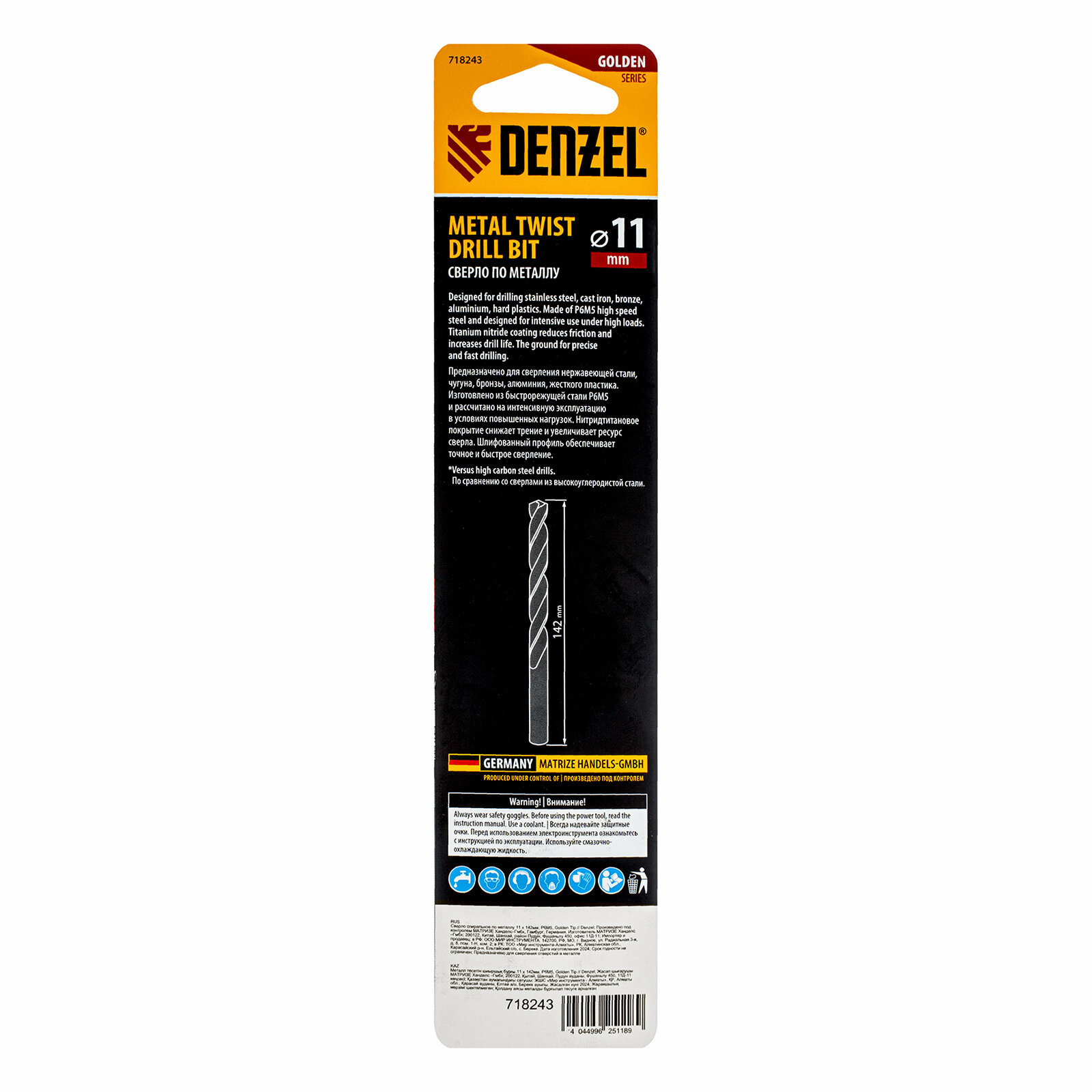 Купить Сверло спиральное по металлу Denzel 11 x 142 мм, Р6М5, Golden Tip 718243