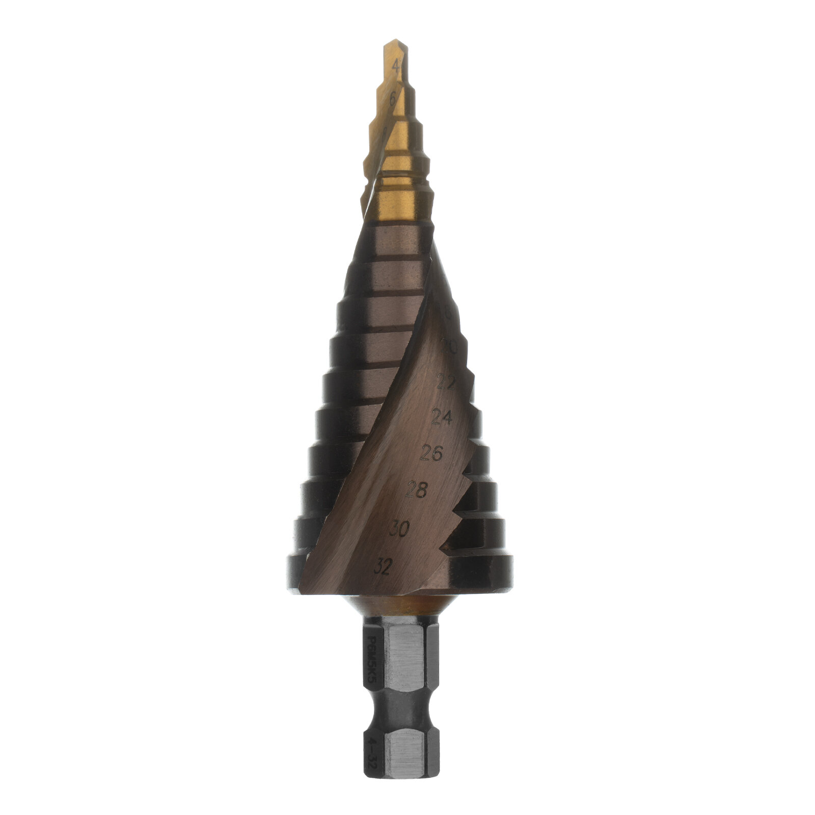 Сверло ступенчатое Denzel 4-6-8-10-12-14-16-18-20-22-24-26-28-30-32 мм, Р6М5К5, 6-гр. хвостовик 723616 интересное: