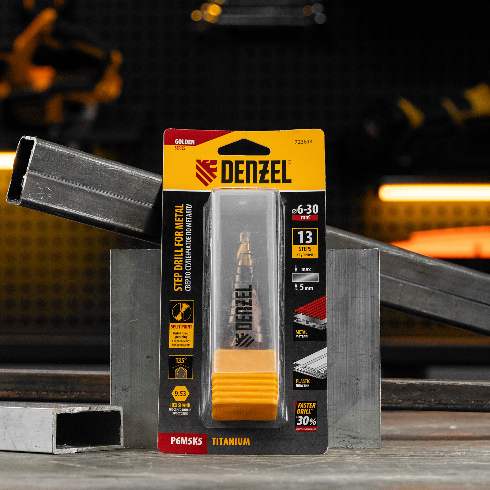 Сверло ступенчатое Denzel 6-8-10-12-14-16-18-20-22-24-26-28-30мм, Р6М5К5, 6-гр. хвостовик 723614 интересное: