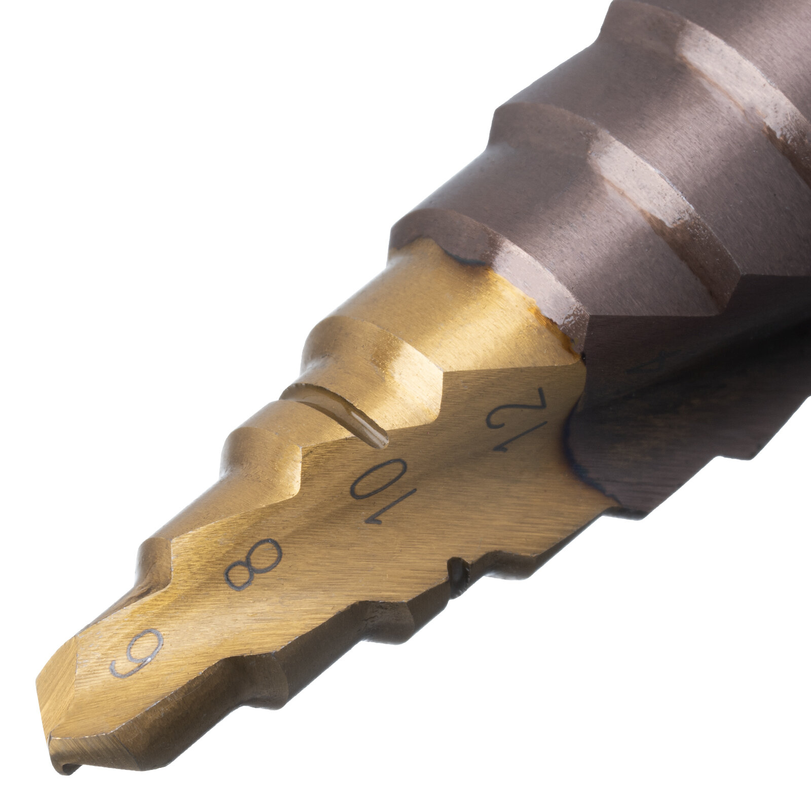 Сверло ступенчатое Denzel 4-5-6-7-8-9-10-11-12 мм, Р6М5К5, 6-гр. хвостовик 723612