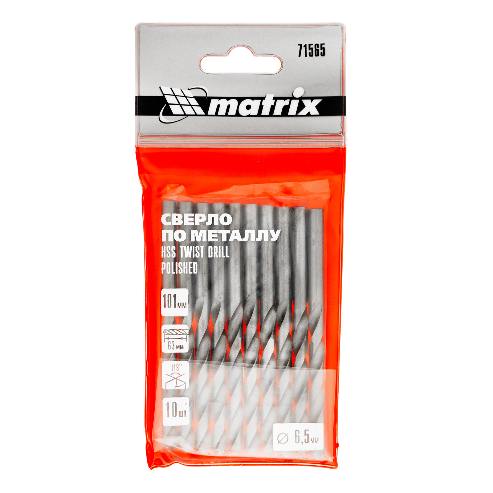 Сверло по металлу Matrix, 6.5 мм, 10 штук, цилиндрический хвостовик, сталь HSS, полированное, 71565 интересное: