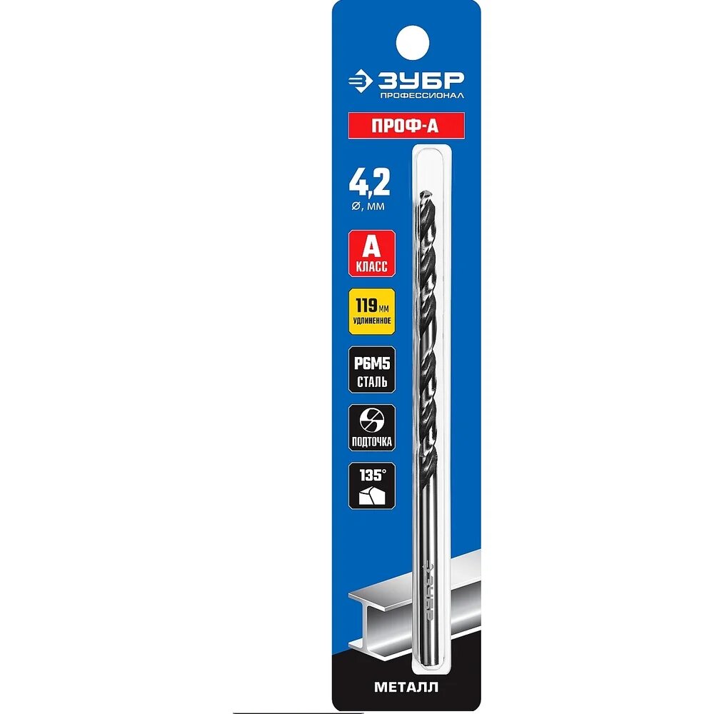 Удлиненное сверло по металлу ЗУБР 4.2х119 мм; Р6М5; класс А интересное: