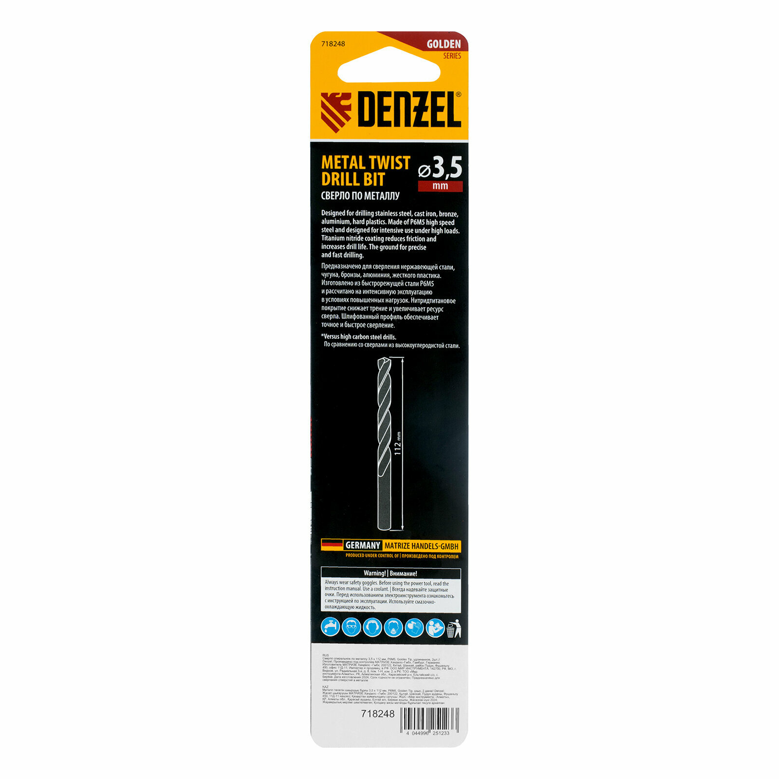 Купить Сверло спиральное по металлу Denzel 3,5 х 112 мм, Р6М5, Golden Tip, удлиненное, 2шт. 718248