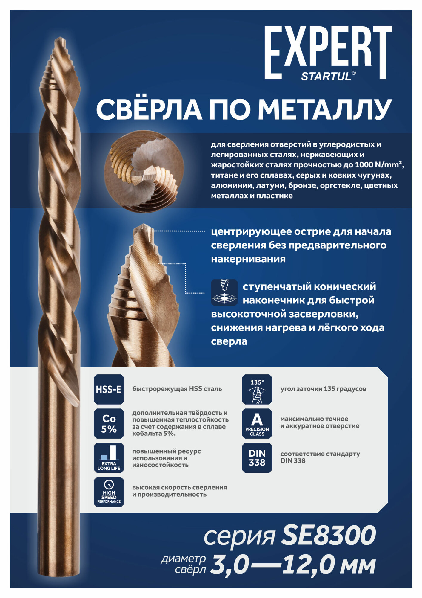 Купить Сверло по металлу ц/х 9.0х81х125 мм HSS-Co EXPERT STARTUL (кобальт 5%) (SE8300-90)