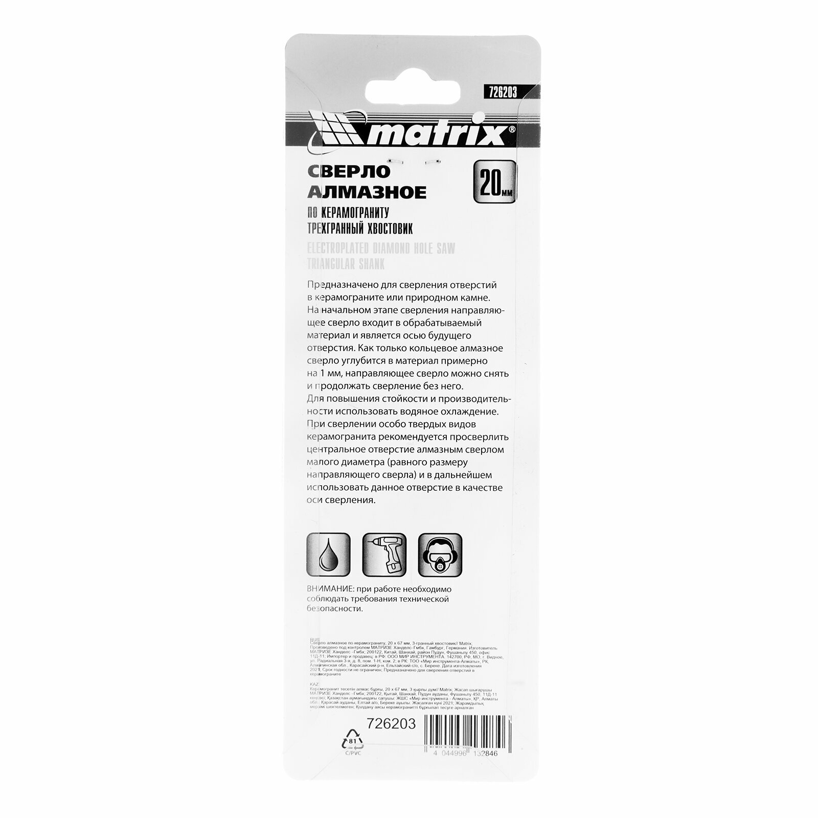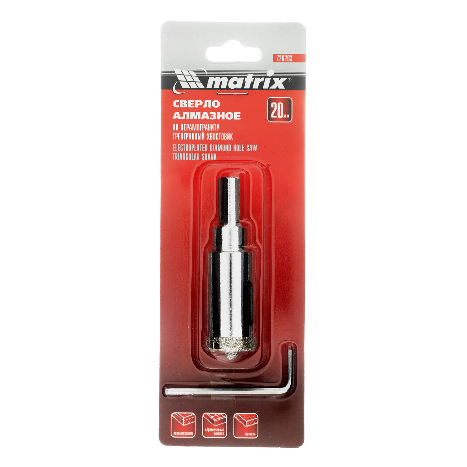 Сверло алмазное по керамограниту Matrix 20 х 67 мм, 3-гранный хвостовик 726203 интересное: