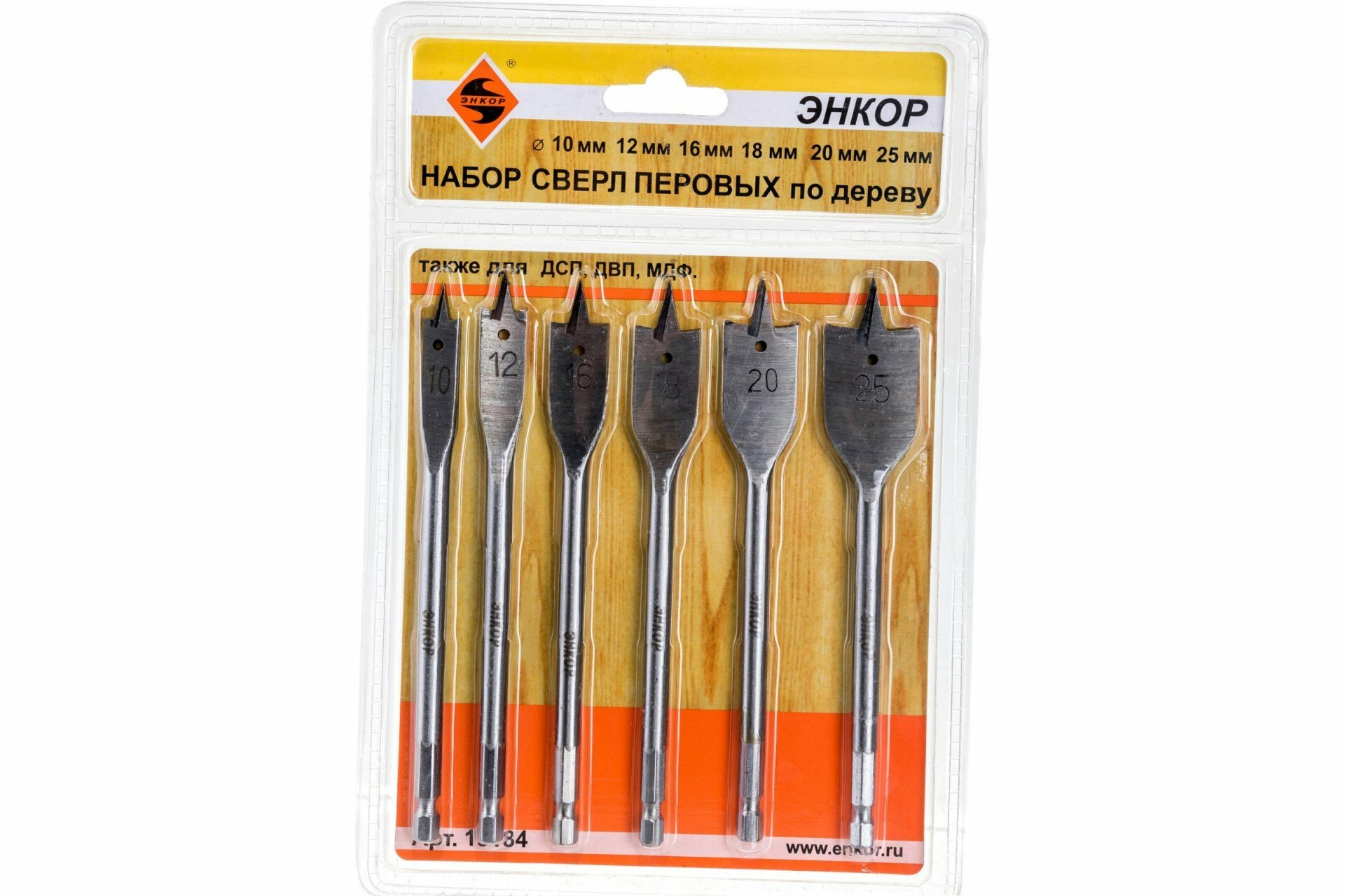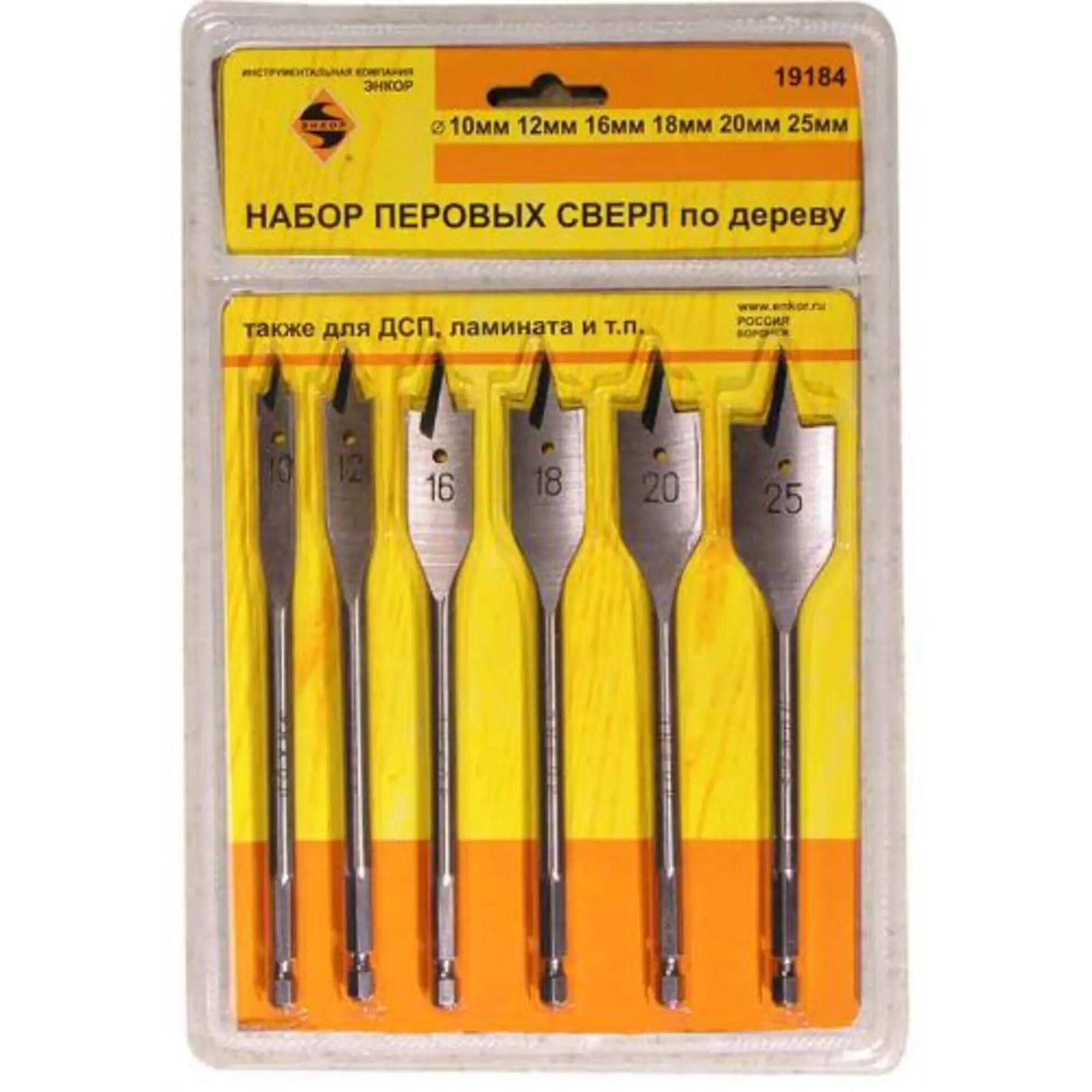 Набор сверл перовых (6 шт; 10-25х152 мм) по дереву Энкор (19184) интересное: