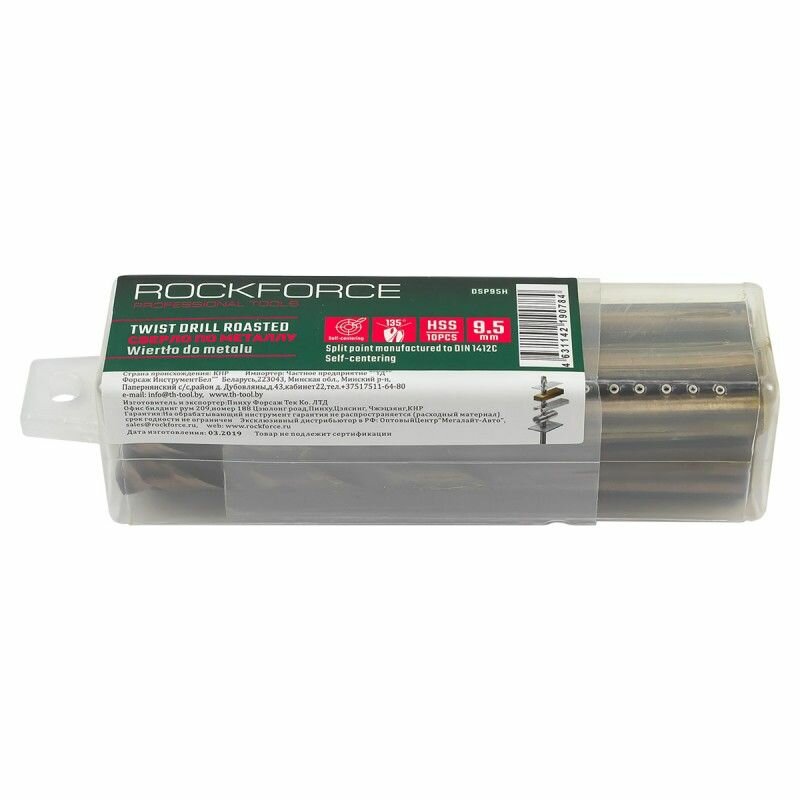 Купить Сверло по металлу 9.5мм HSS+Co(10шт), в пластиковом футляре ROCKFORCE