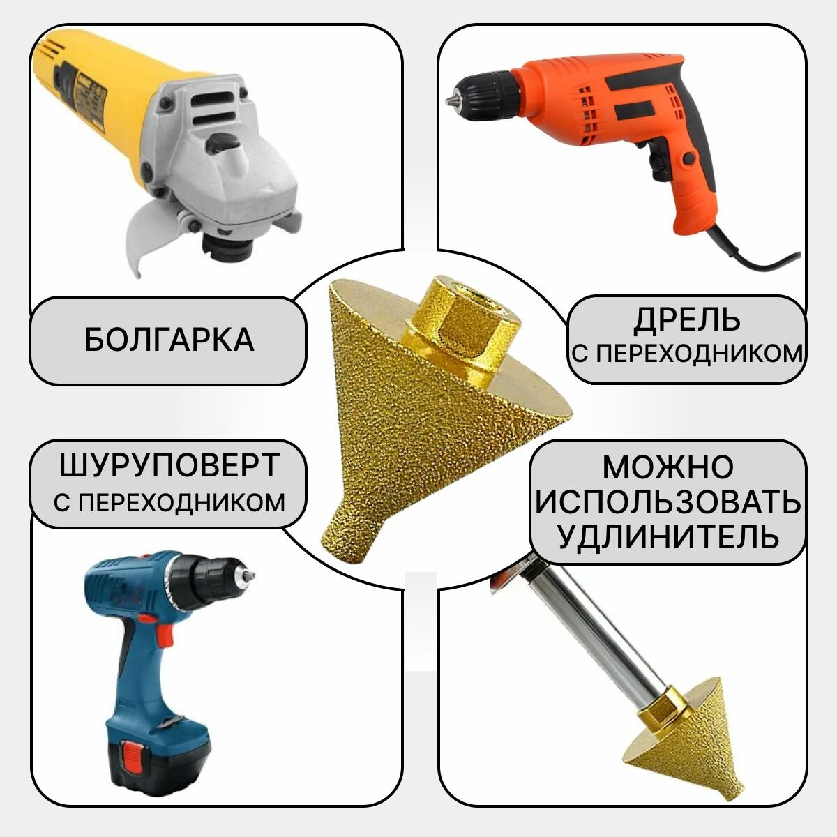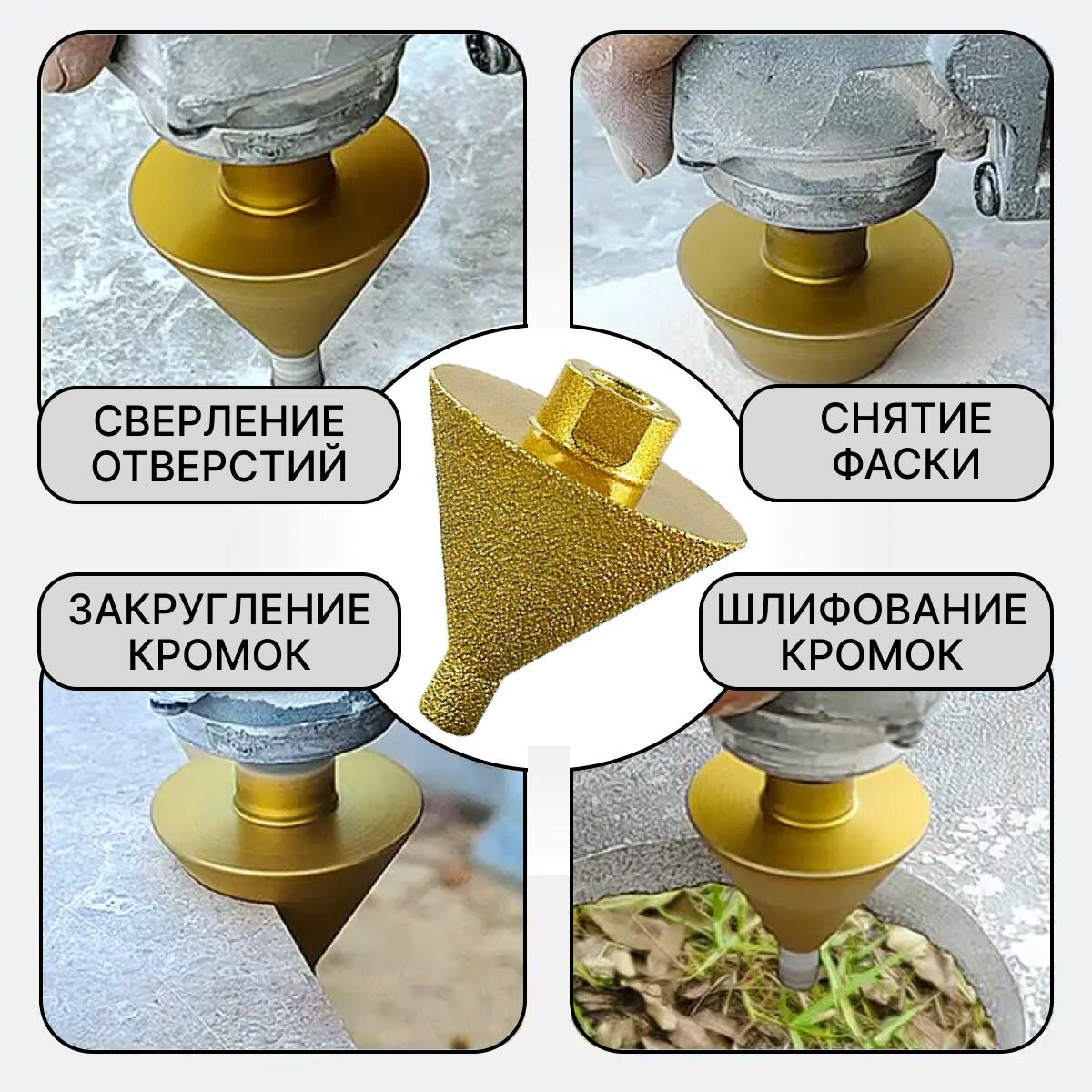 Алмазное коническое сверло для снятия фаски по камню, мрамору, стеклу; резьба М14 50 х 55 мм интересное: